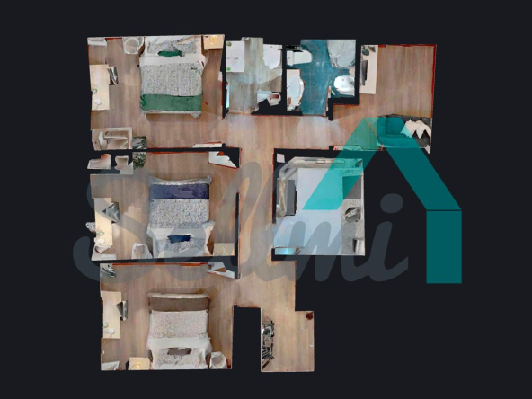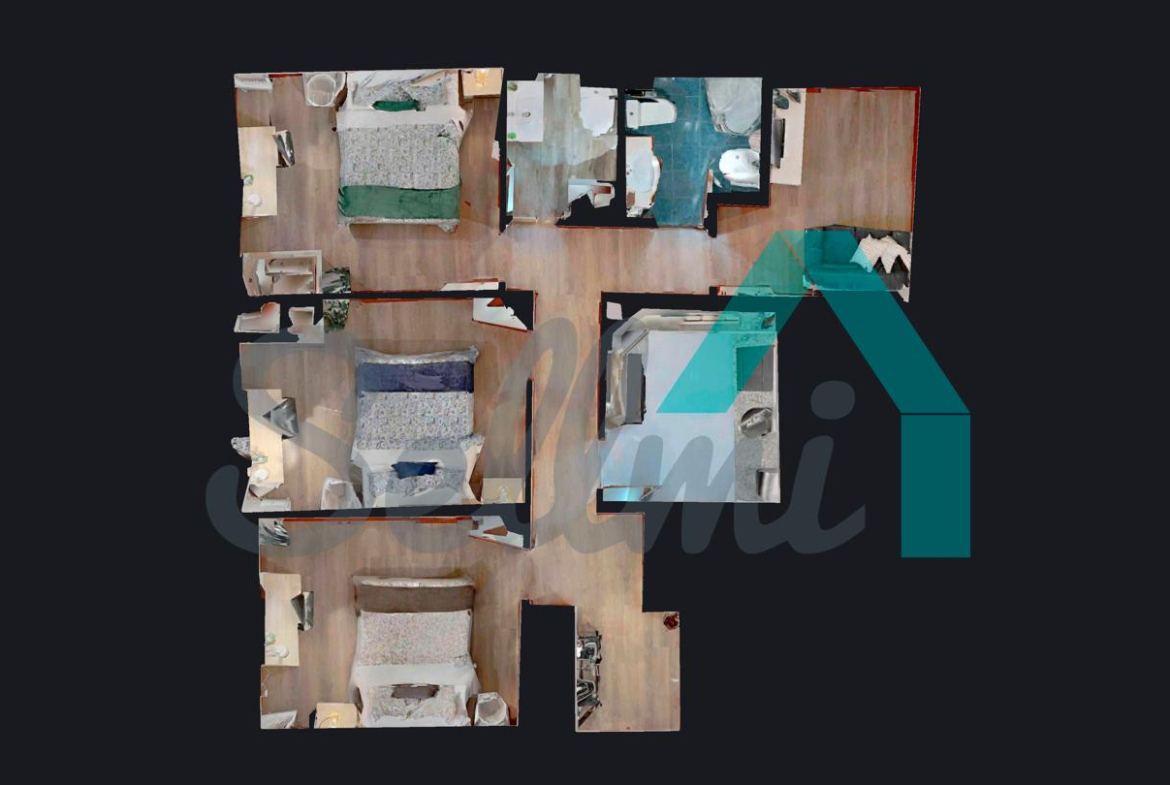 3 habitaciones y 2 baños.