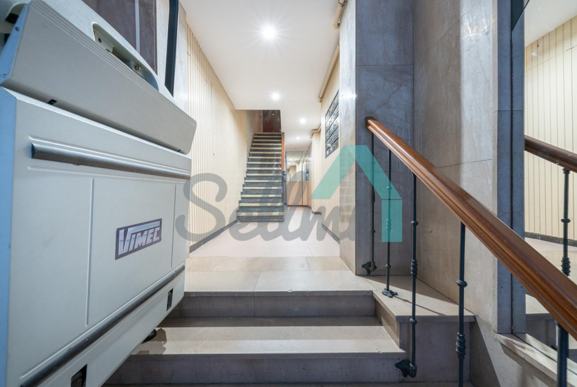 Piso en alquiler junto al Auditorio y a poca distancia del Seminario, Oviedo. Está ubicado en la segunda planta de un edificio construido en 1972, sin barreras arquitectónicas (elevador) y que cuenta con ascensor. Es interior, con orientación este.