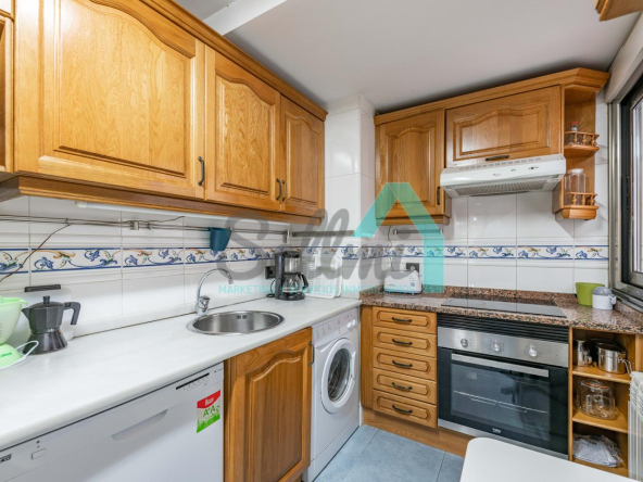 La vivienda tiene una superficie construida de 75 m² distribuidos en hall de entrada, salón comedor, cocina amueblada y equipada, una pequeña terraza, dos habitaciones y dos baños completos. Plaza de garaje opcional situada en el mismo edificio y con acceso directo en ascensor (55 € al mes).