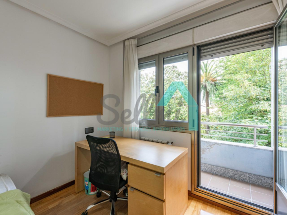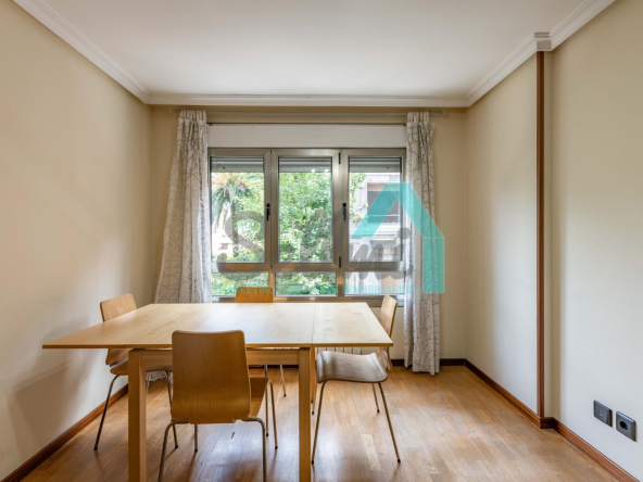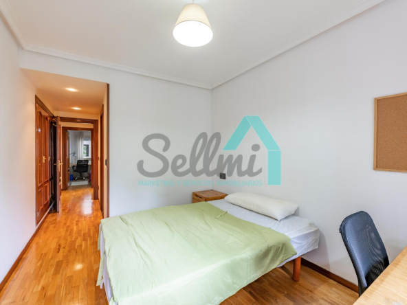 Dispone de suelos de parqué y gres, calefacción individual de gas natural, armarios empotrados, ventanas doble acristalamiento, puerta de seguridad, mesas de estudio, etc.