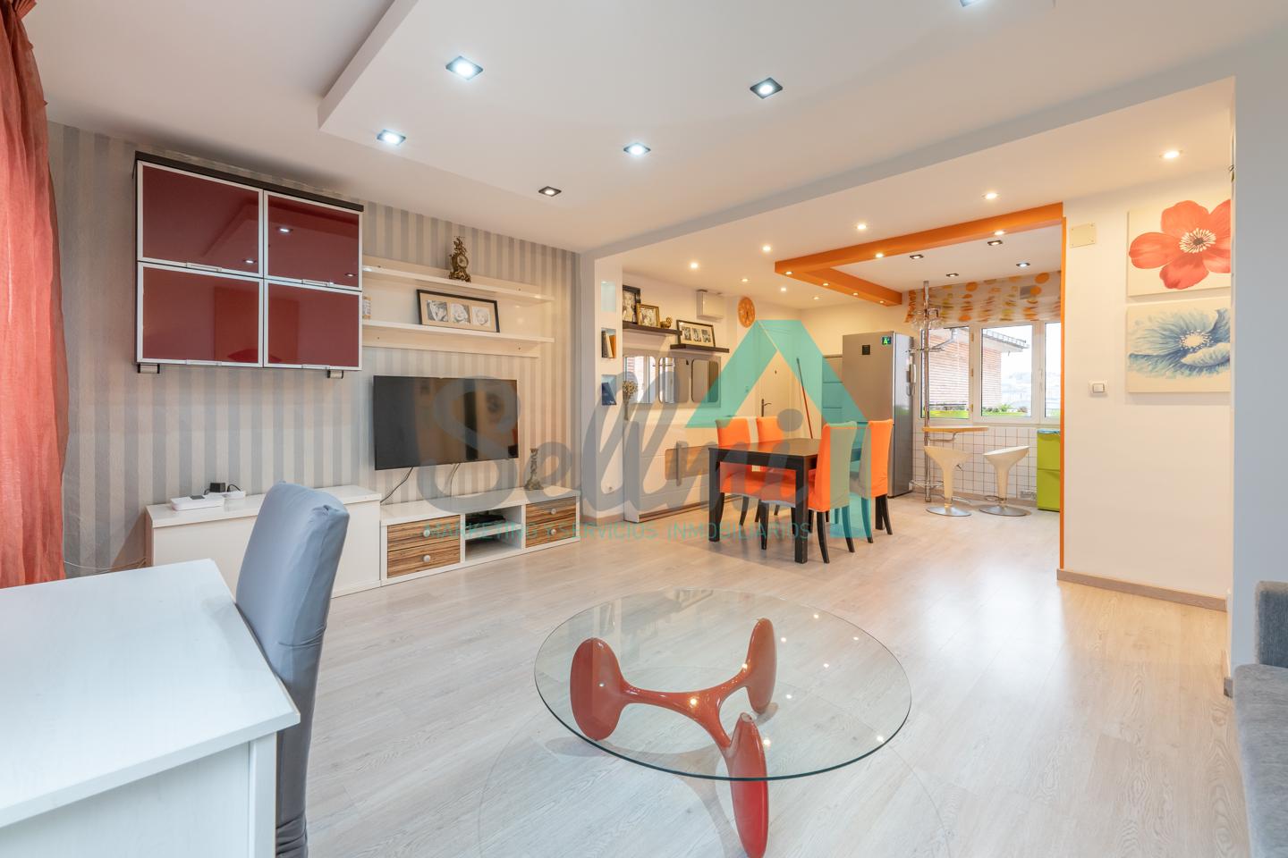 Dispone de suelos de tarima, calefacción individual eléctrica, aire acondicionado, ventanas de doble acristalamiento, sofá cama, lavavajillas, mesas de estudio, puerta de seguridad, etc.