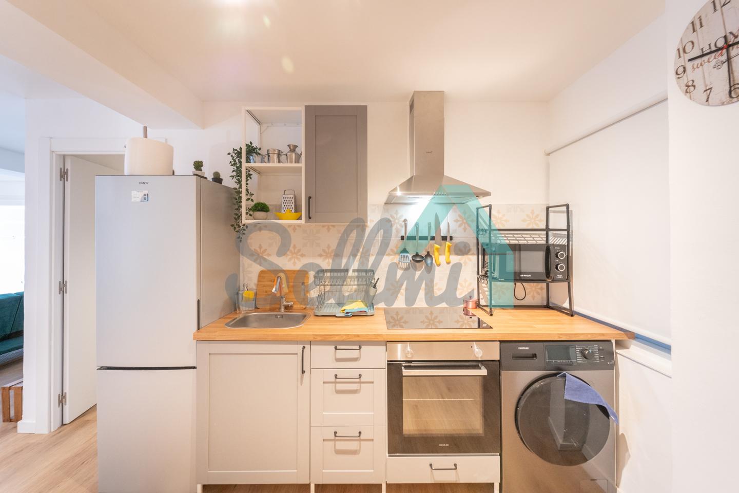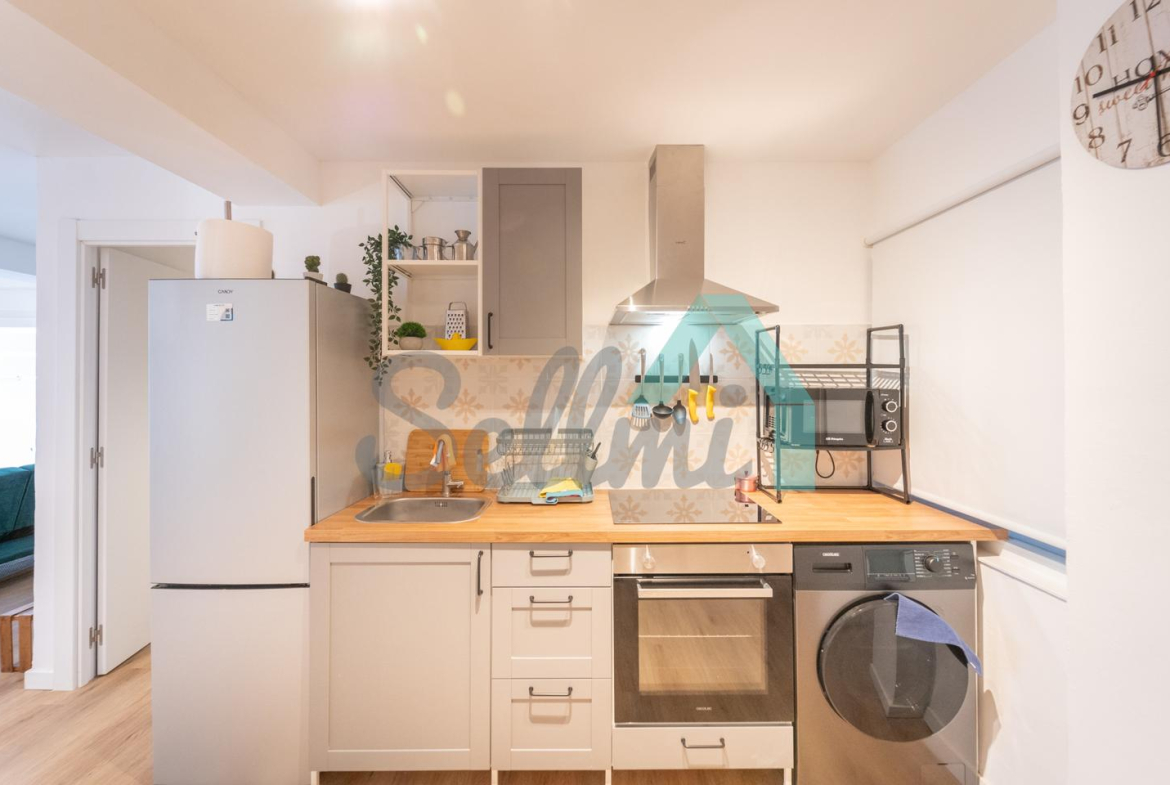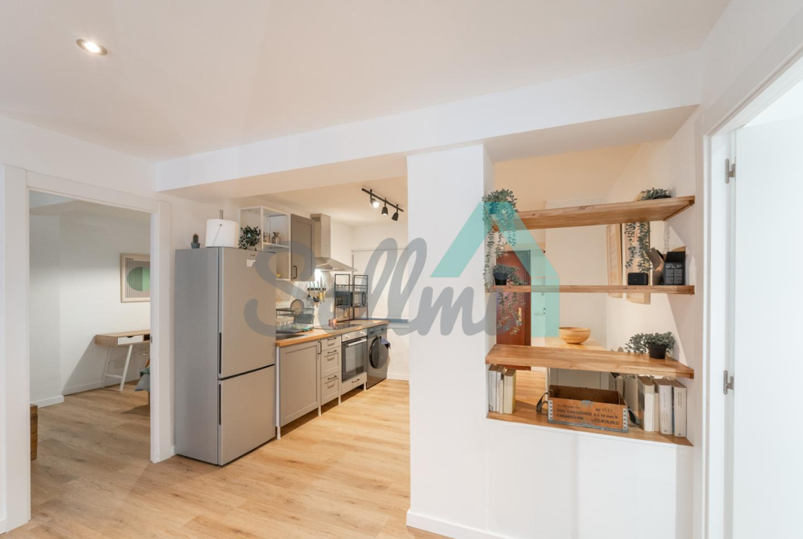 La vivienda, que ha sido totalmente reformada y se encuentra en perfecto estado, tiene una superficie construida de 81 m² distribuidos en hall de entrada, salón comedor, una pequeña terraza, cocina amueblada y equipada, dos habitaciones y un baño completo.