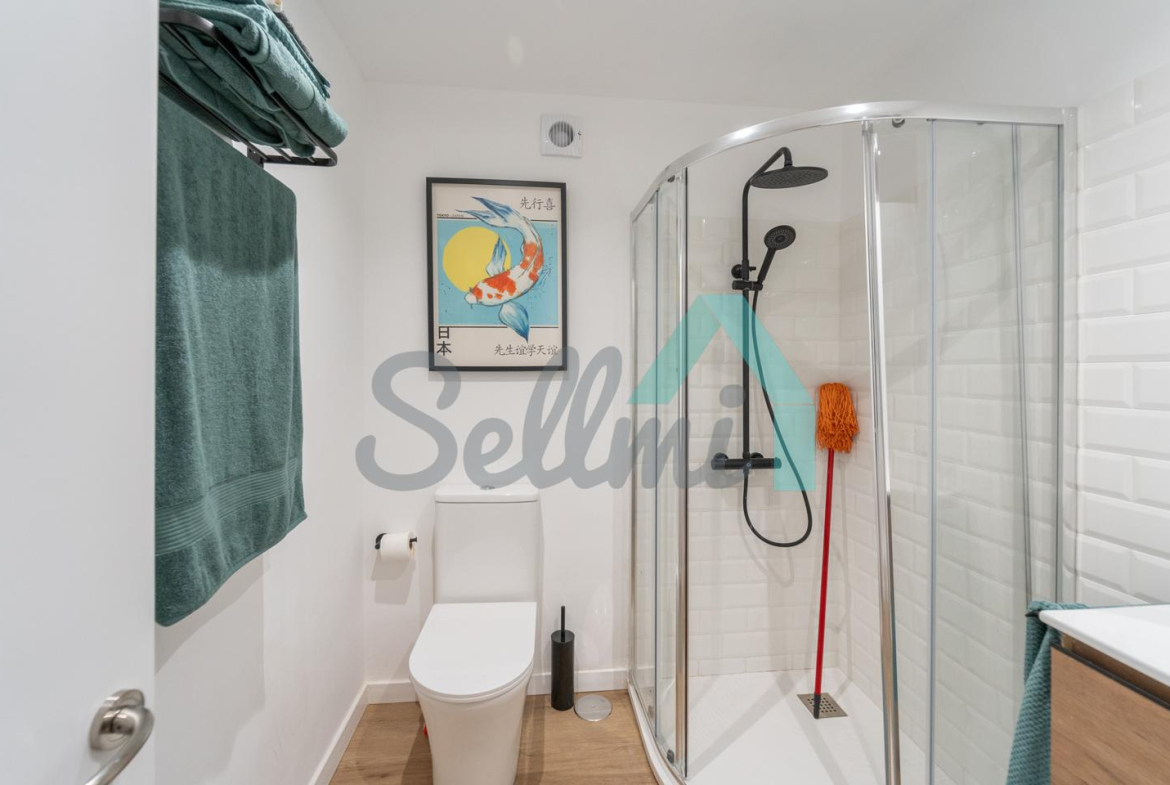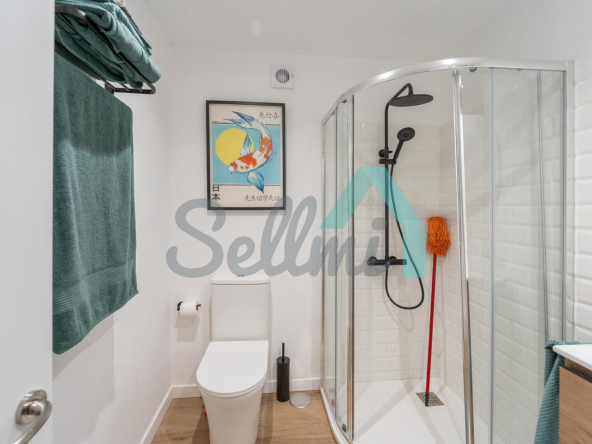 Dispone de calefacción individual eléctrica, suelos de tarima y gres, ventanas de doble acristalamiento, puerta de seguridad, etc.