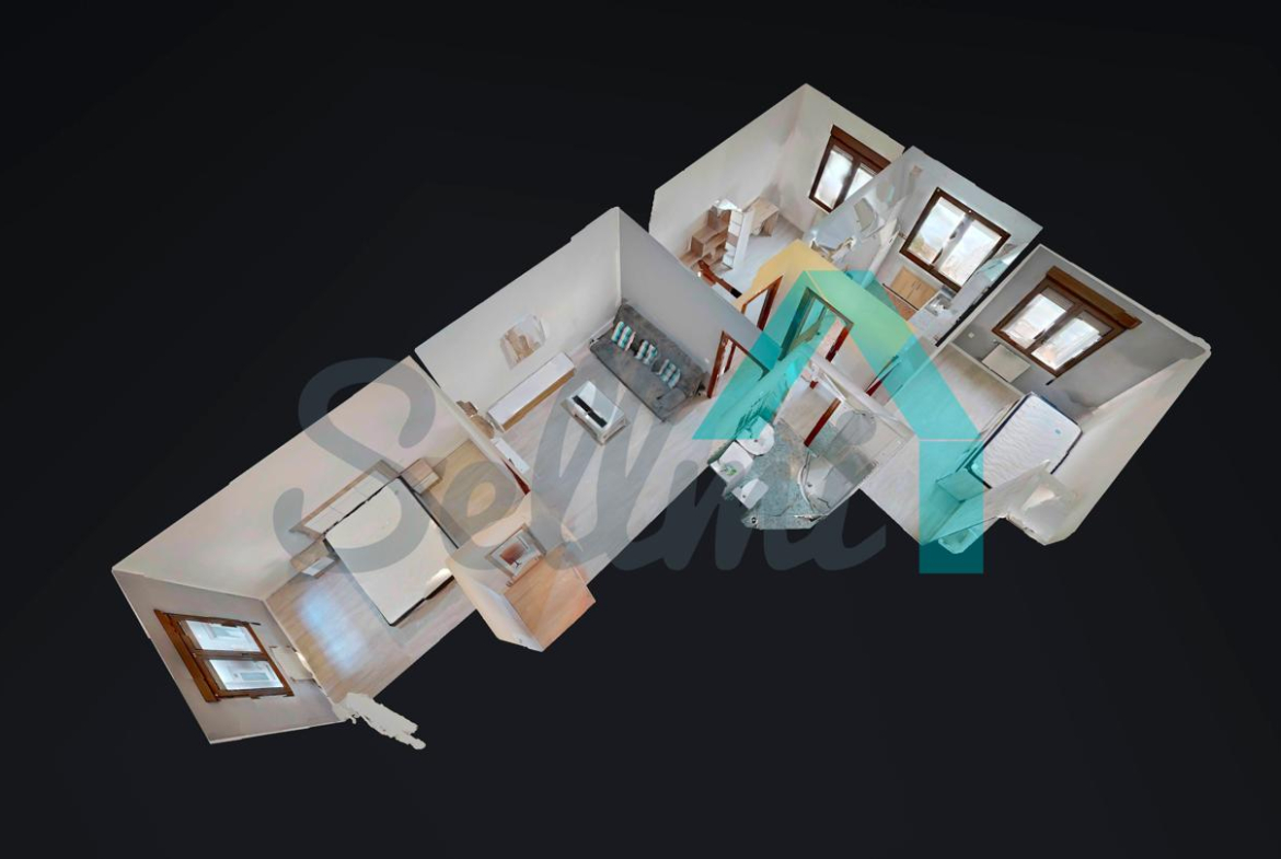 La vivienda, que ha sido reformada, tiene una superficie construida de 79 m2 distribuidos en hall de entrada, salón, cocina amueblada y equipada, tres habitaciones y un baño completo.