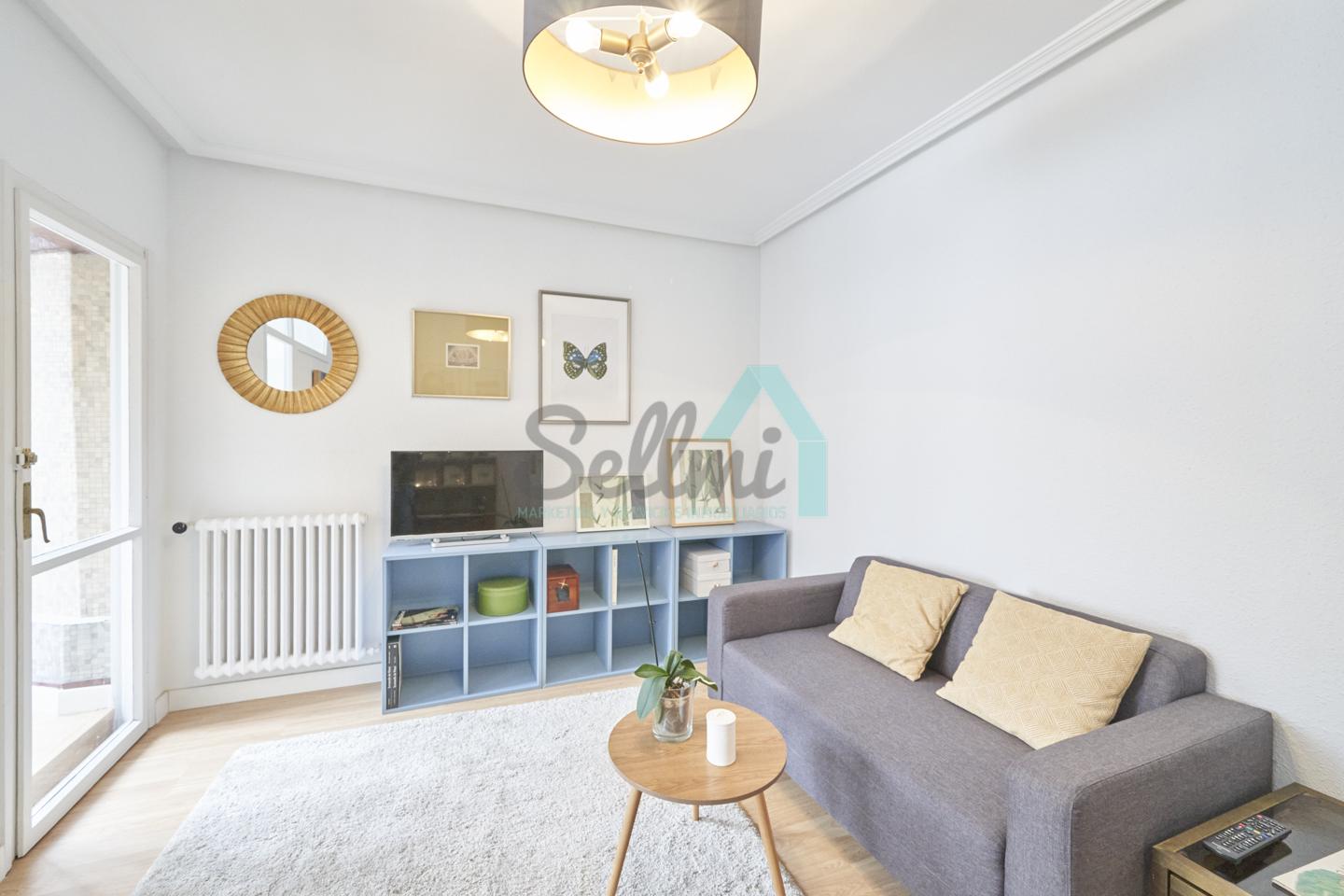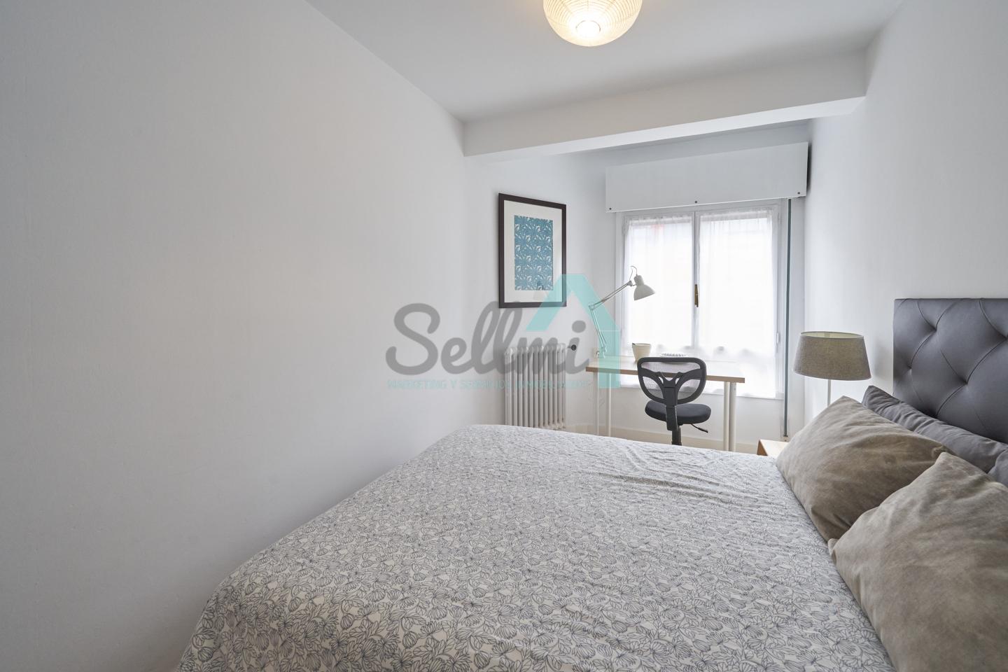 Se alquila totalmente amueblada y dispone de suelos de tarima y gres, ventanas de madera, armario empotrado en el pasillo, calefacción central con contador individual, mesas de estudio, puerta de seguridad, videoportero, etc.