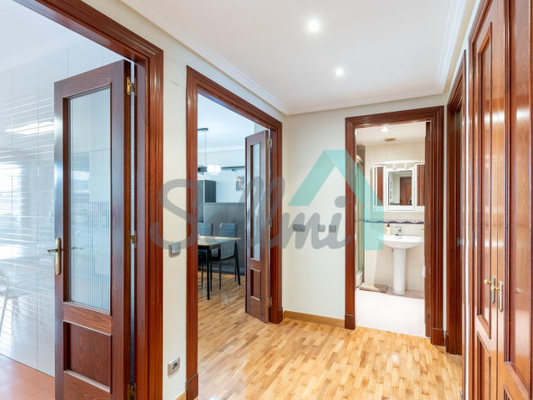 Dispone de suelos de parqué y gres, calefacción individual de gas ciudad, armarios empotrados, ventanas de doble acristalamiento, puerta de seguridad, etc.