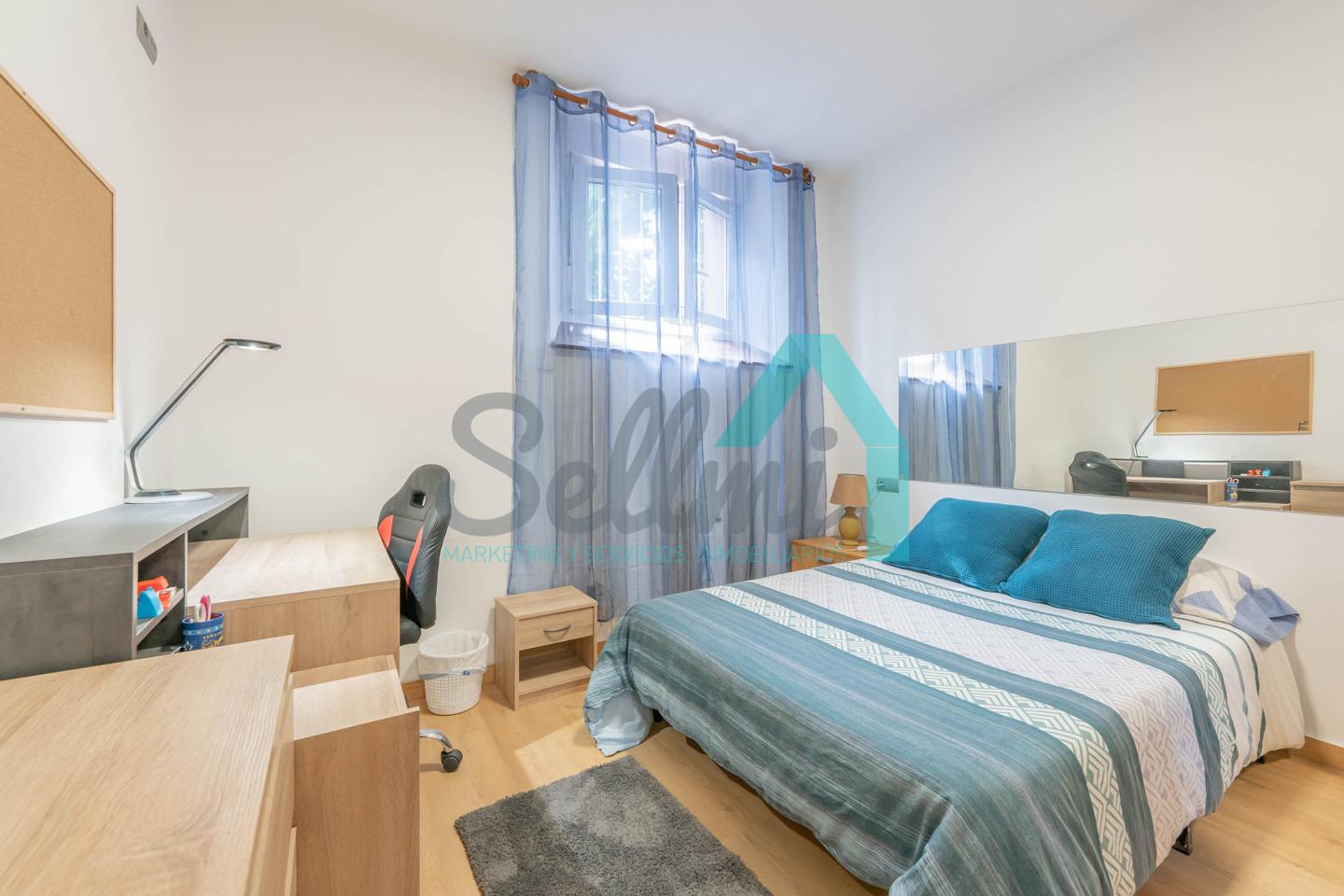 La vivienda, que ha sido reformada integralmente, dispone de techos altos, suelos de tarima y gres, ventanas de doble acristalamiento, calefacción eléctrica, mesas de estudio, lavadora y secadora, puerta de seguridad, etc.