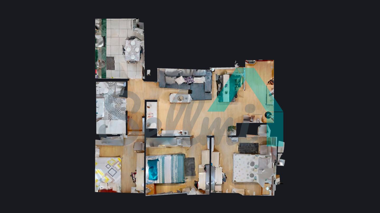 Tiene una superficie construida de 81 m² distribuidos en salón comedor, cocina amueblada y equipada, tres habitaciones y un baño completo.