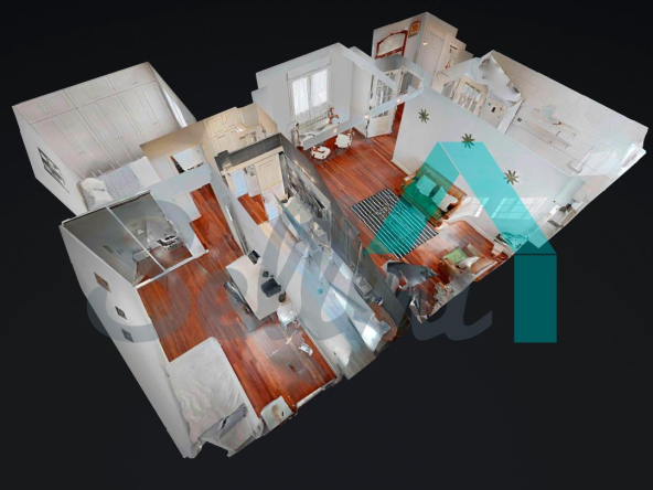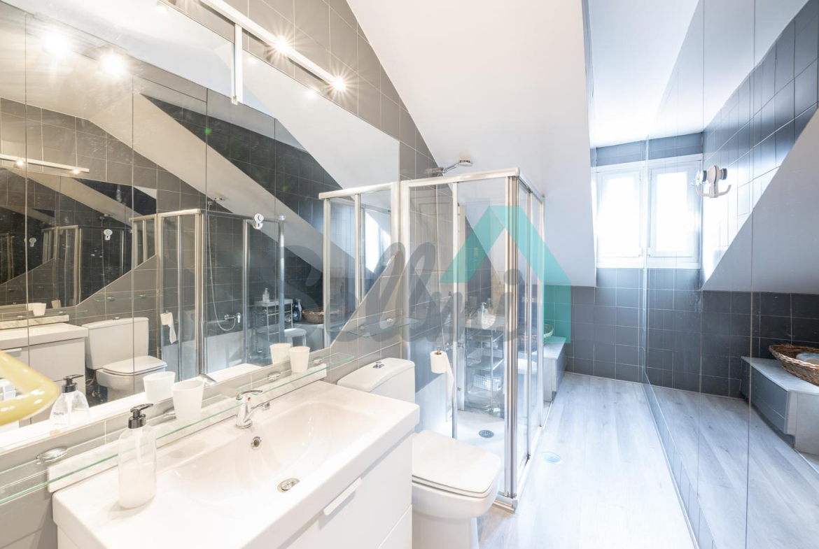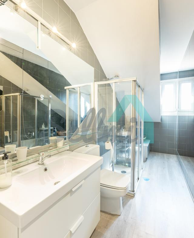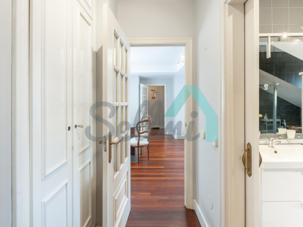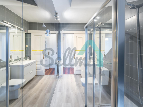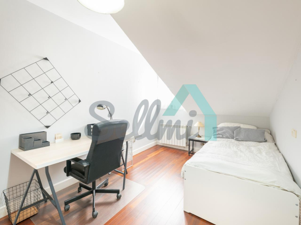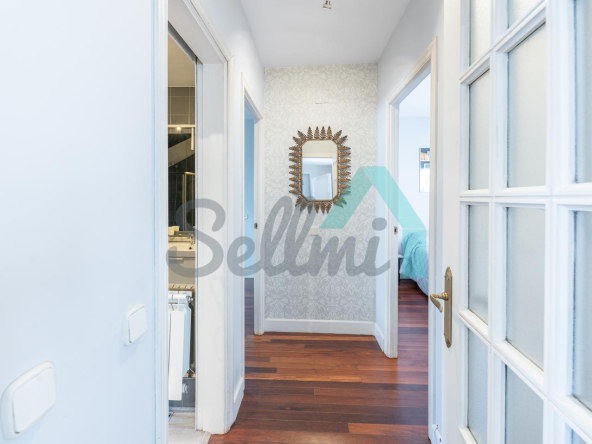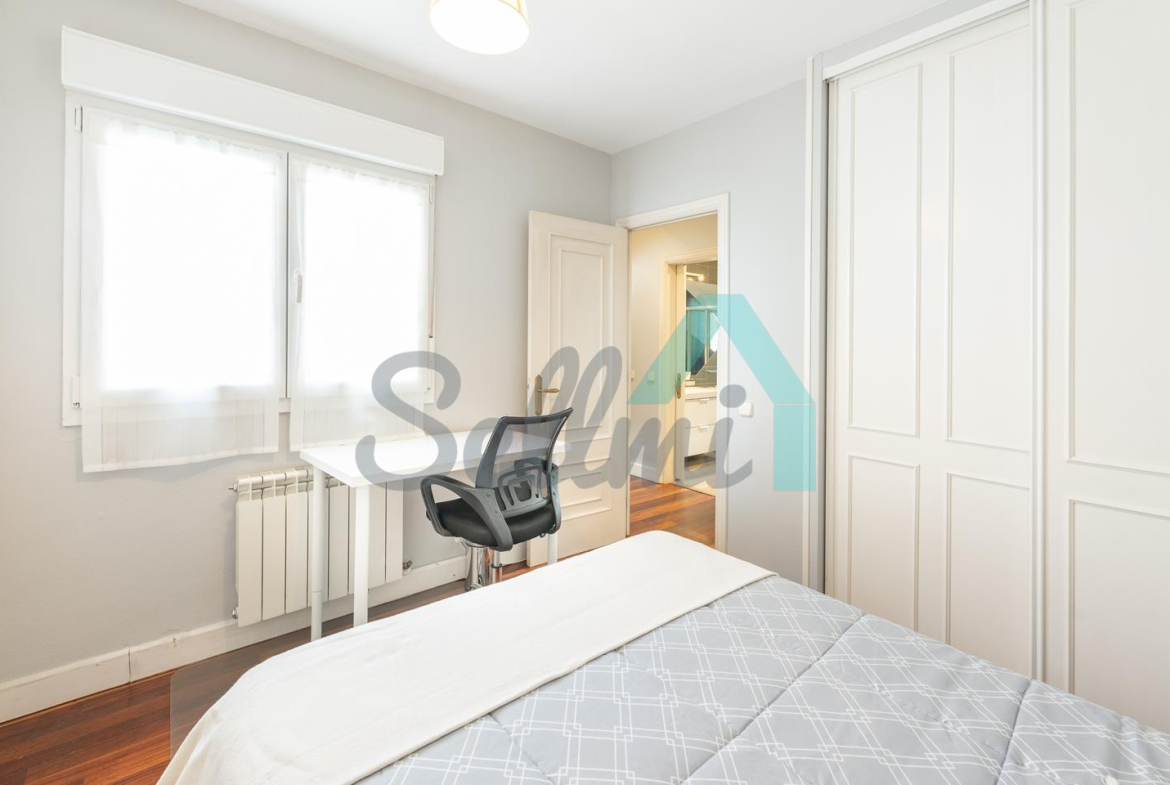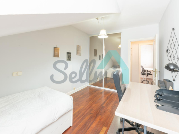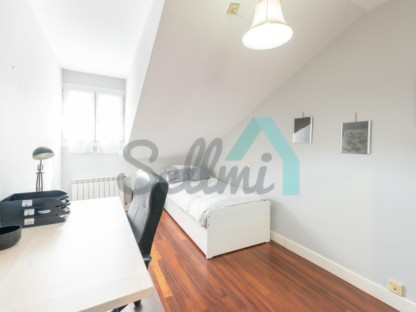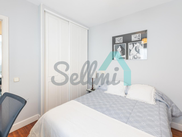 Dispone de calefacción individual de gas ciudad, suelos de madera de caoba y tarima flotante, ventanas de doble acristalamiento con rotura de puente térmico, armarios empotrados, mesas de estudio, puerta de seguridad, videoportero, etc. Es exterior, con orientación sureste.