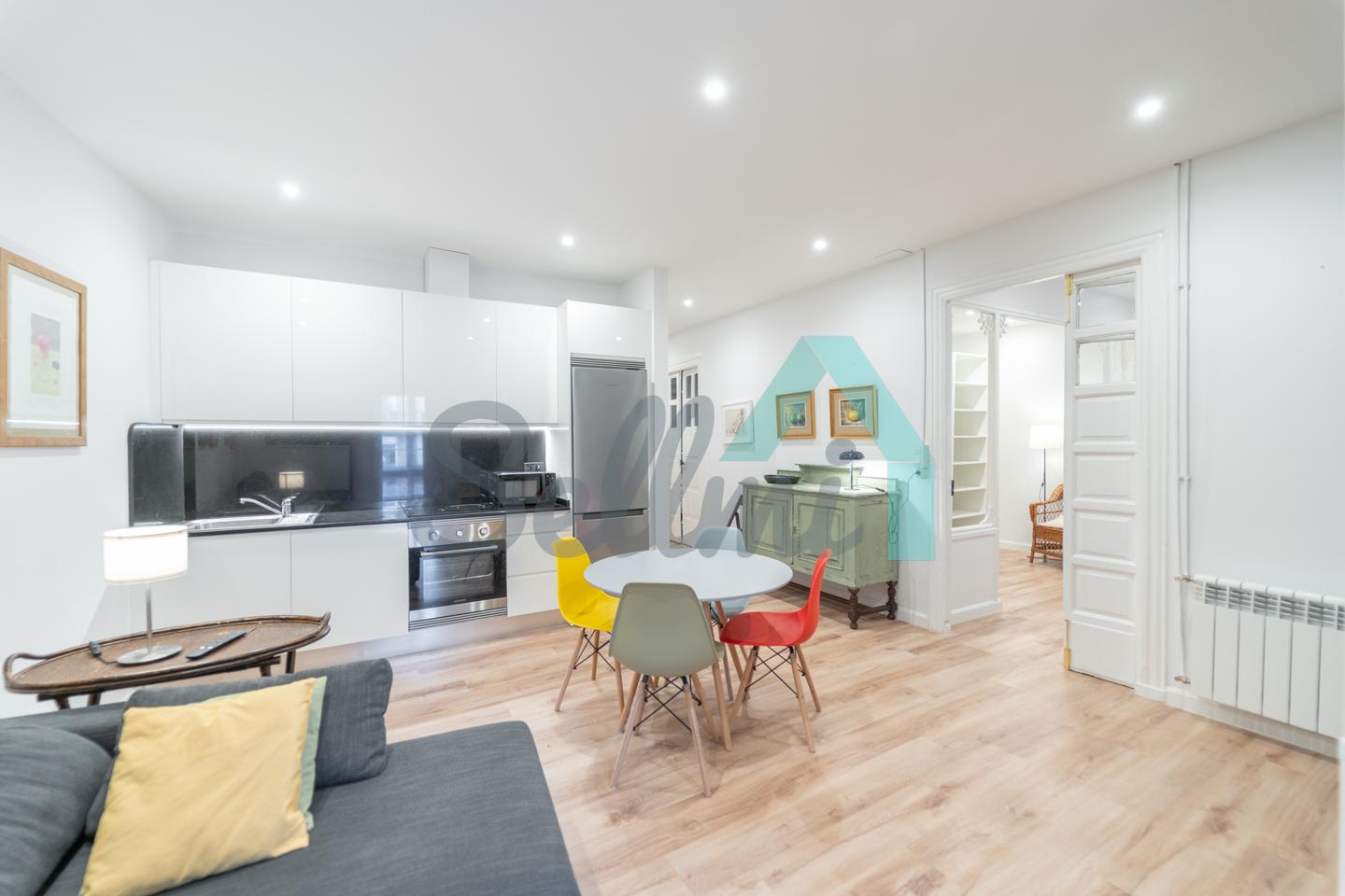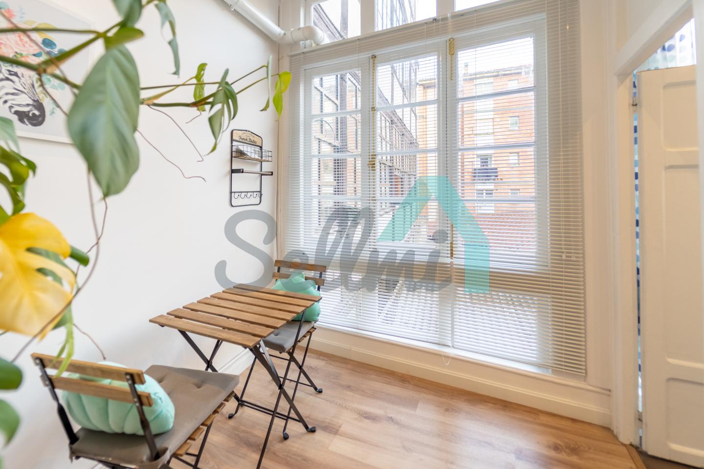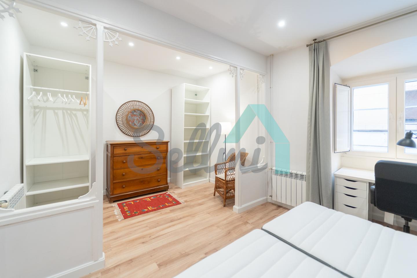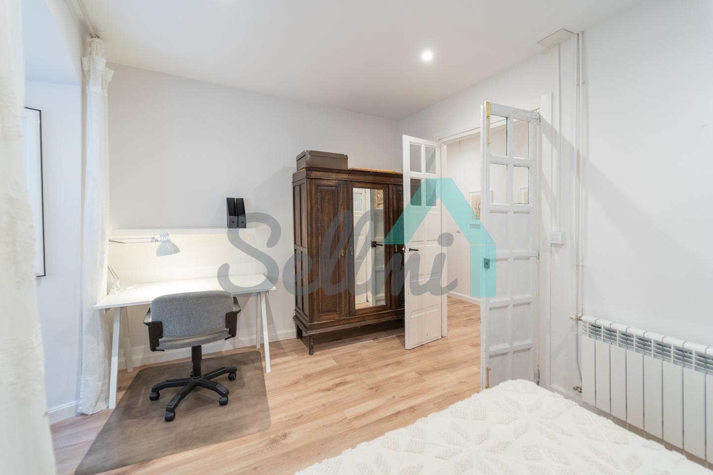 Dispone de calefacción individual de gas ciudad, ventanas de PVC con doble acristalamiento y de madera originales, armarios empotrados, suelos de tarima y gres, puerta de seguridad, etc. El precio del alquiler incluye comunidad e internet.