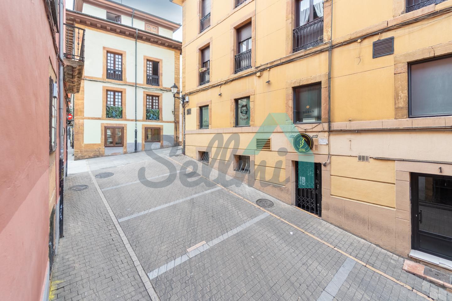 Piso en alquiler situado en pleno casco histórico de Oviedo, en una calle peatonal a poca distancia de la Catedral. Se encuentra en un edificio construido en 1880 y reformado en 1977, sin ascensor. Es exterior y muy luminoso, con orientación norte.