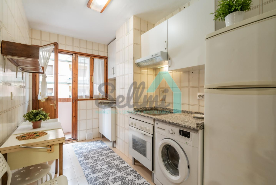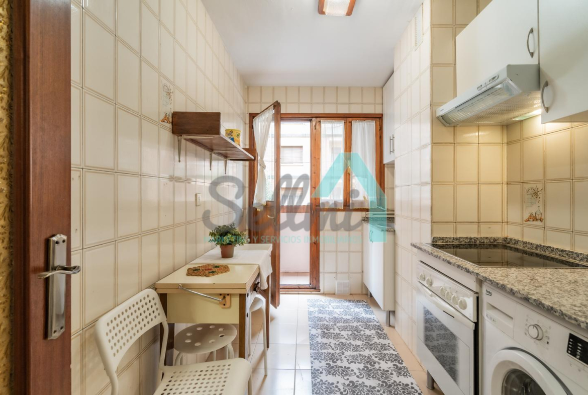 Piso en alquiler situado en la zona de la Tenderina Baja, Oviedo. Está ubicado en un edificio, construido en 1989 y que cuenta con ascensor. Es exterior, con orientación suroeste.
