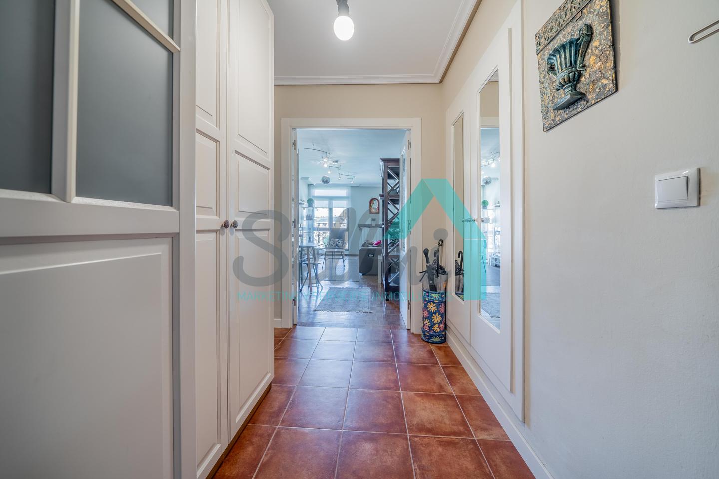 La vivienda, que está en muy buen estado, tiene una superficie construida de 87 m² distribuidos en hall de entrada, salón comedor, cocina amueblada y equipada, terraza acristalada, tres habitaciones (una de ellas con terraza), un baño completo y un aseo.