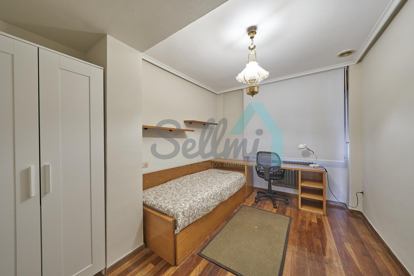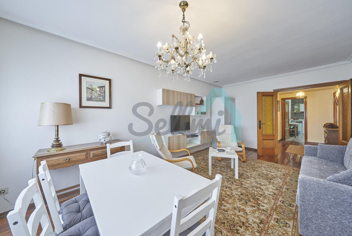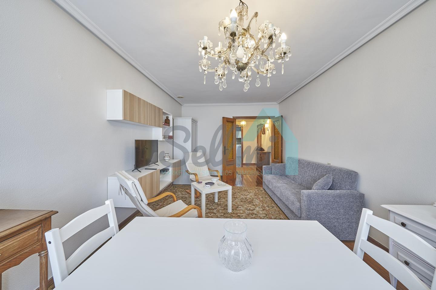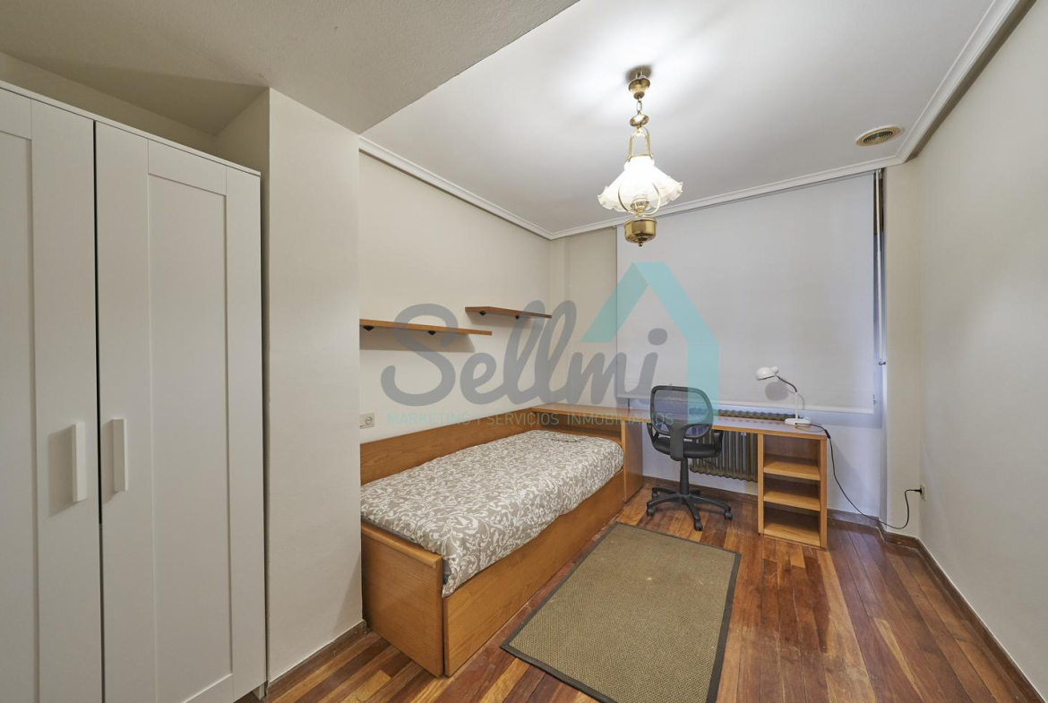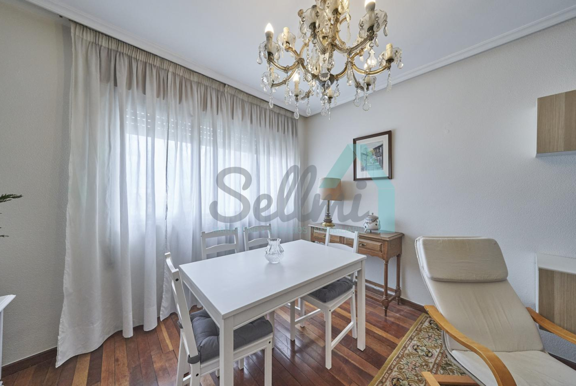 Piso amueblado en alquiler situado en pleno centro de Oviedo. Se encuentra en un edificio construido en 1981, que cuenta con servicios centrales y dos ascensores. Es posterior, con orientación noreste y vista a amplio patio de manzana.