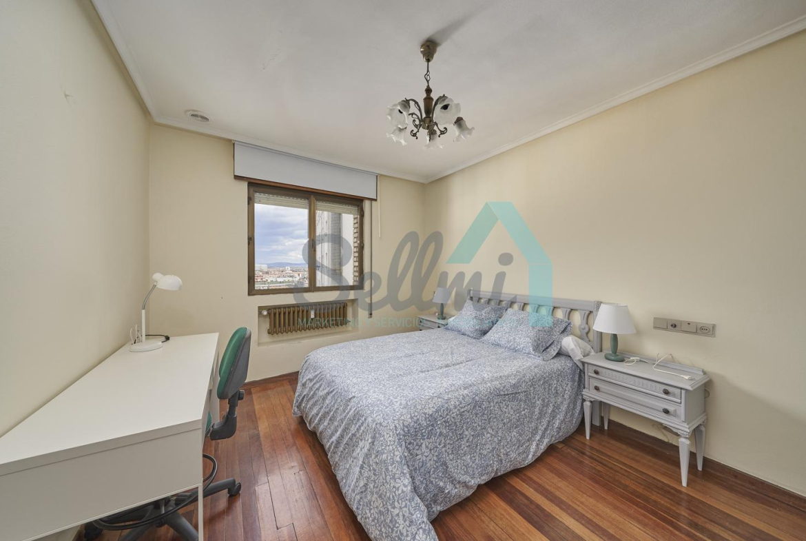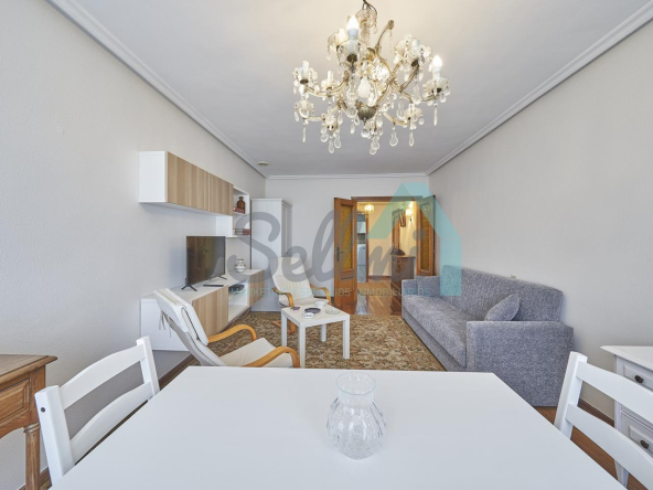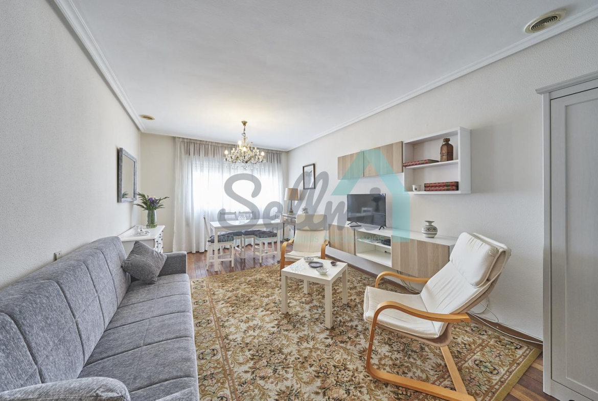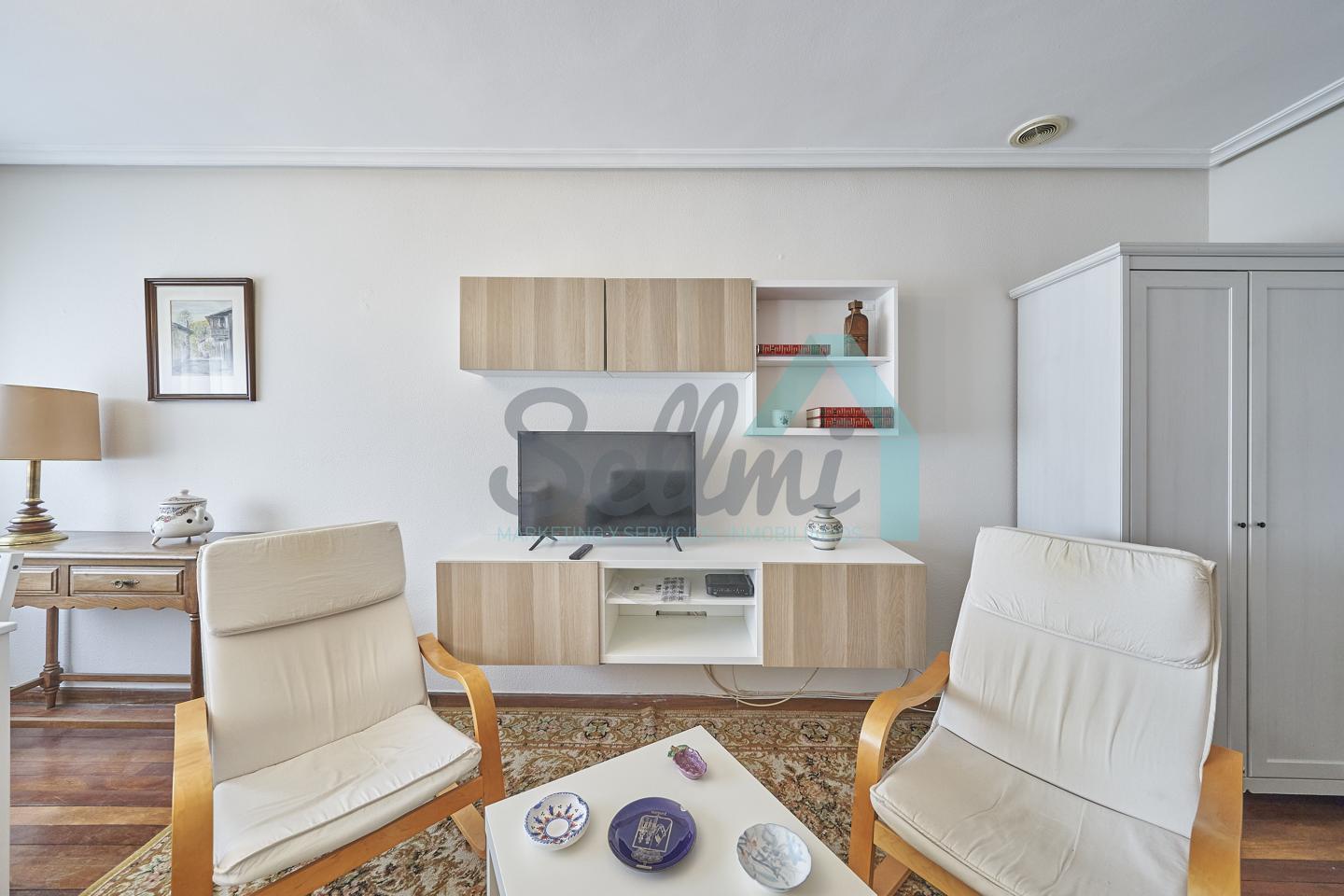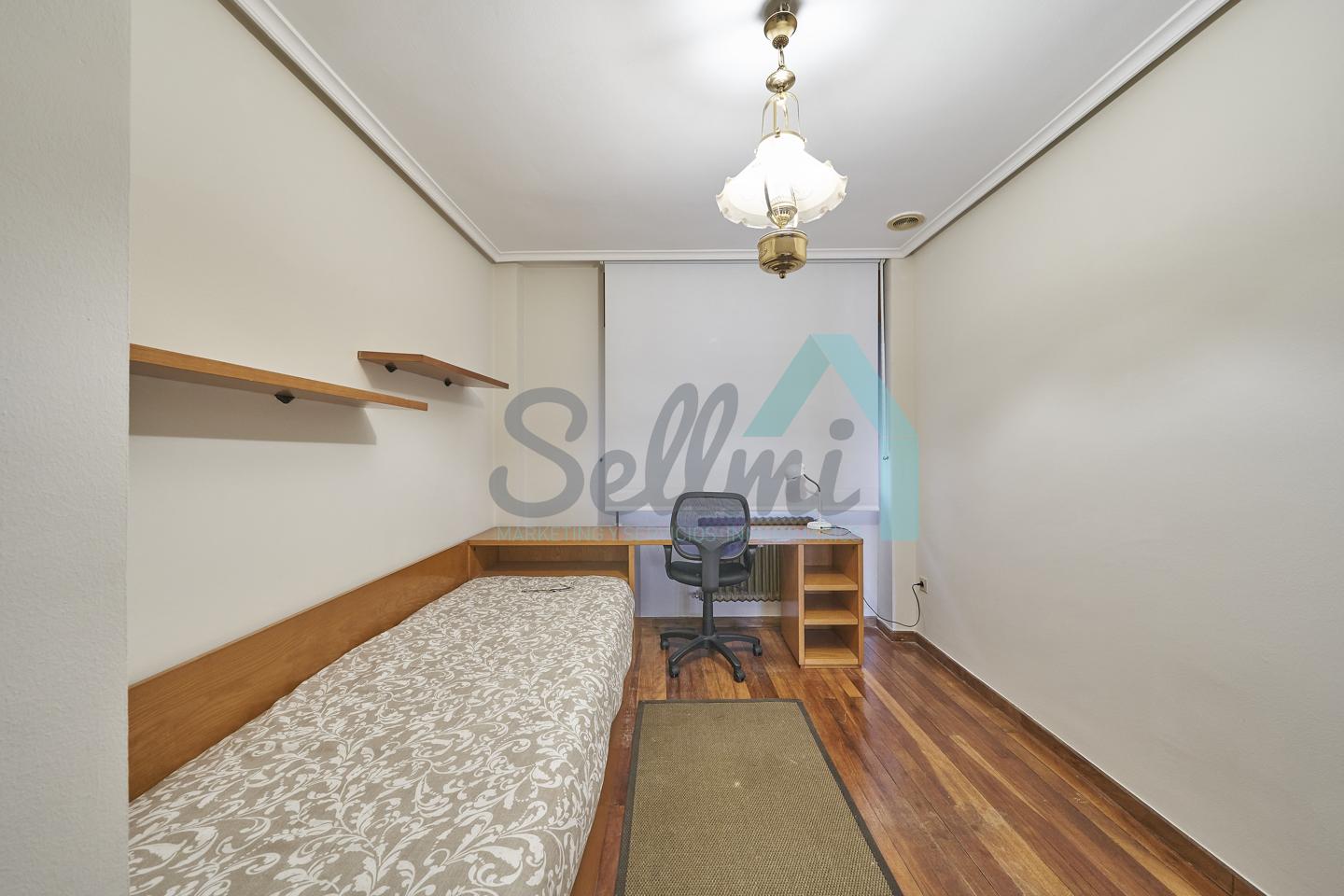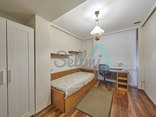 Piso amueblado en alquiler situado en pleno centro de Oviedo. Se encuentra en un edificio construido en 1981, que cuenta con servicios centrales y dos ascensores. Es posterior, con orientación noreste y vista a amplio patio de manzana.