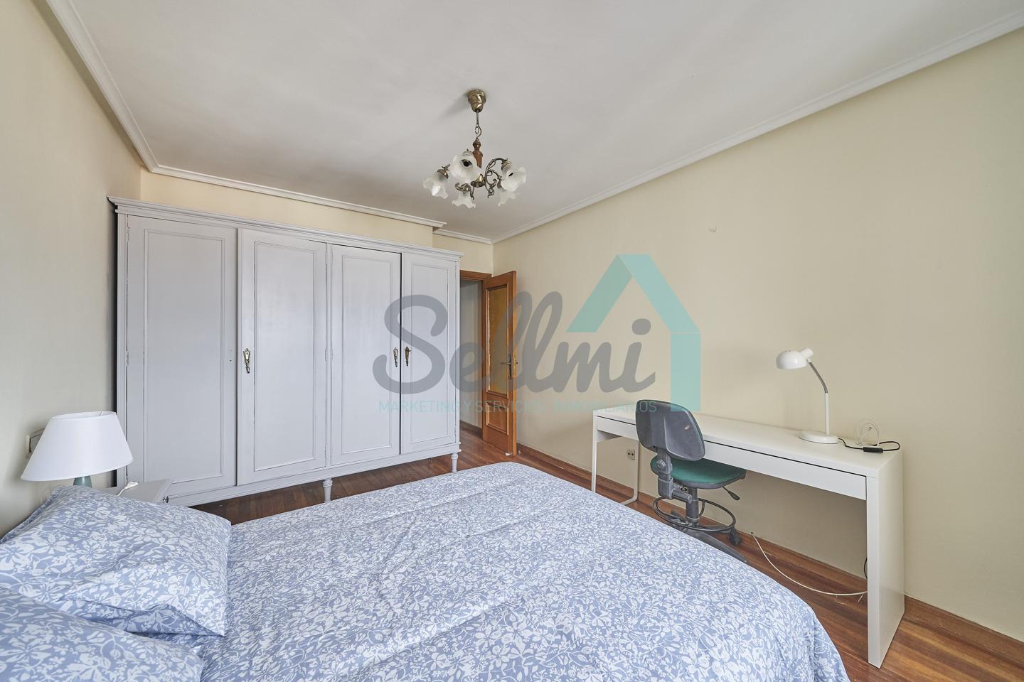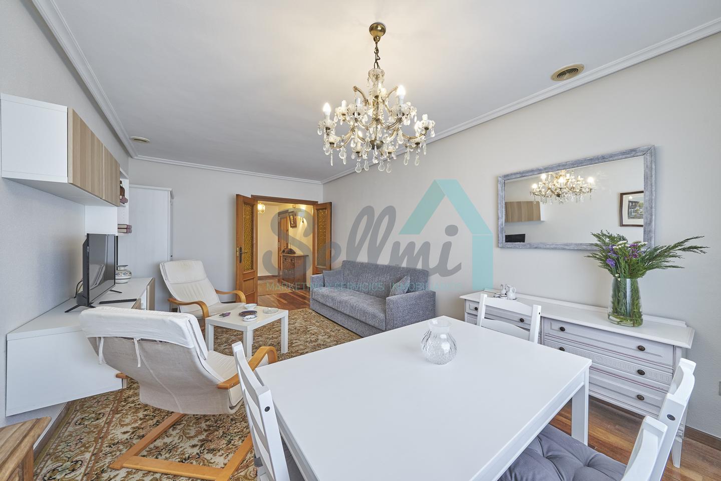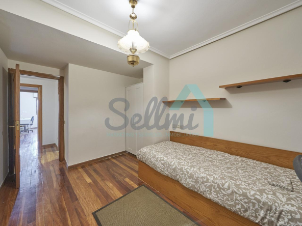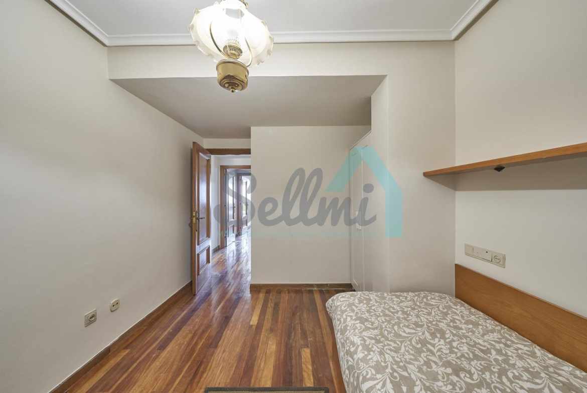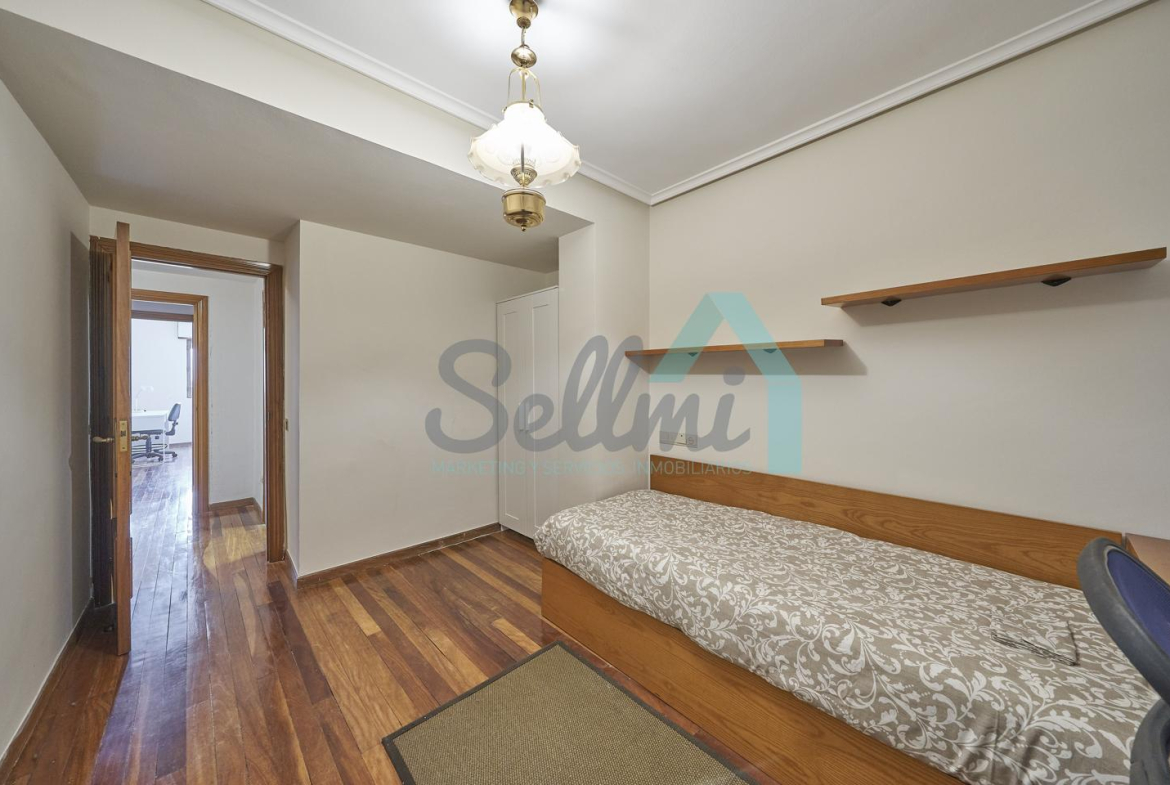 Piso amueblado en alquiler situado en pleno centro de Oviedo. Se encuentra en un edificio construido en 1981, que cuenta con servicios centrales y dos ascensores. Es posterior, con orientación noreste y vista a amplio patio de manzana.