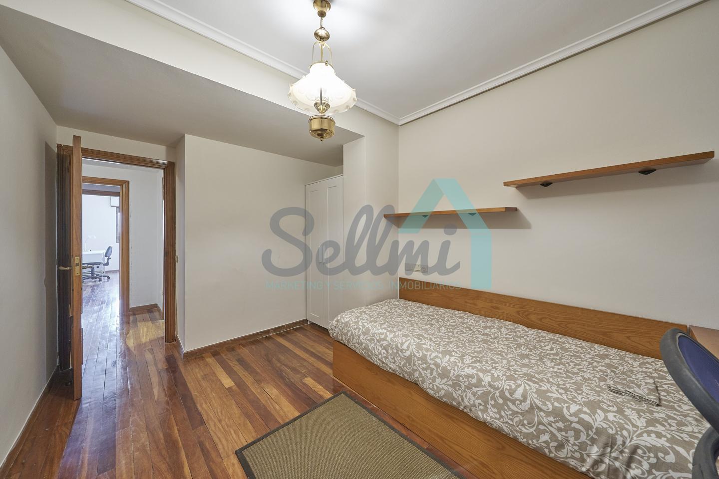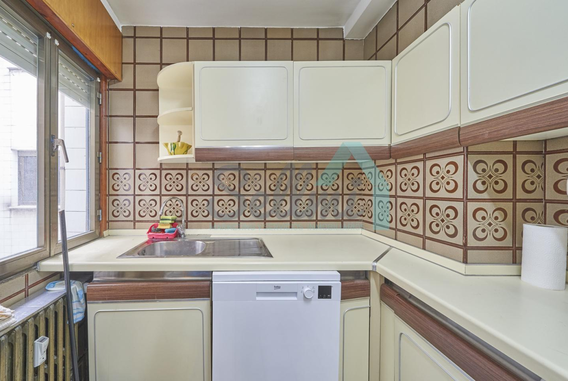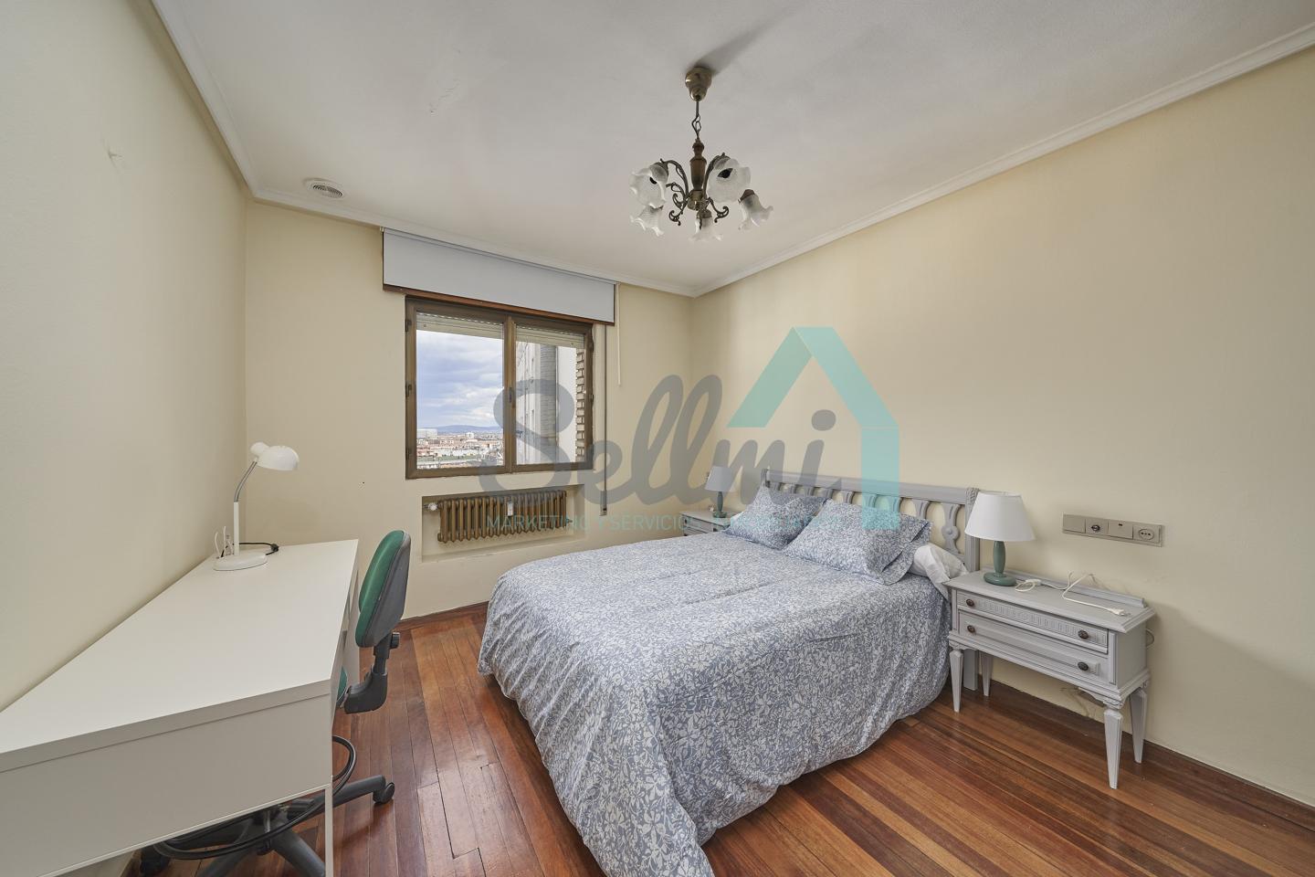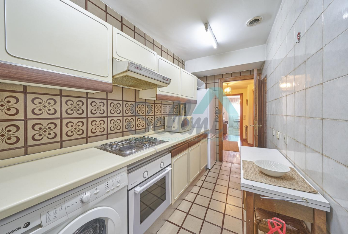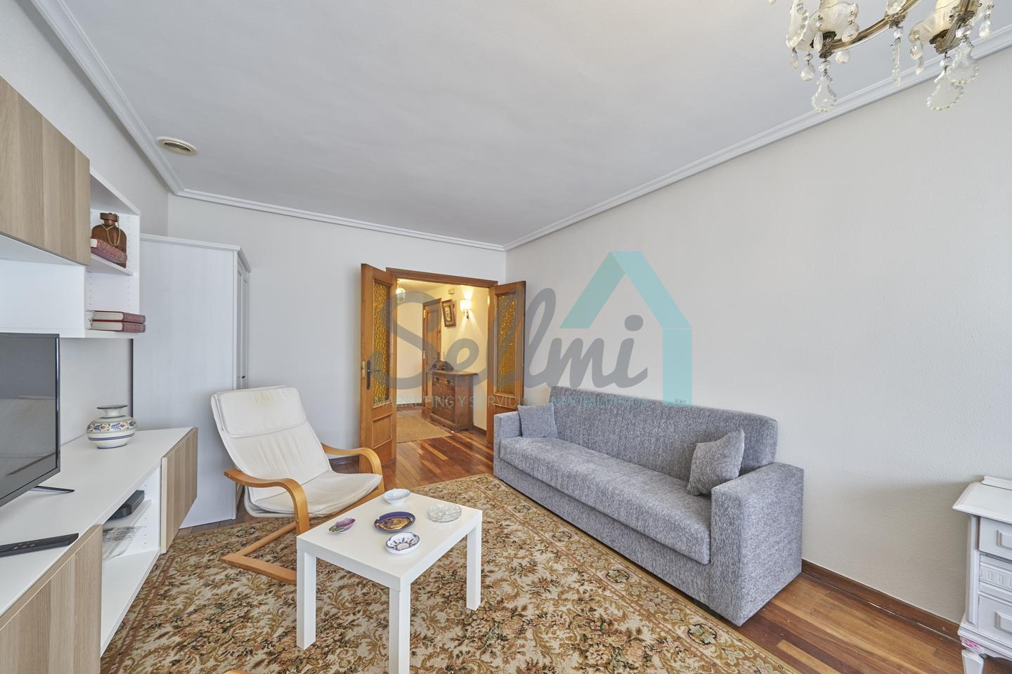 Piso amueblado en alquiler situado en pleno centro de Oviedo. Se encuentra en un edificio construido en 1981, que cuenta con servicios centrales y dos ascensores. Es posterior, con orientación noreste y vista a amplio patio de manzana.