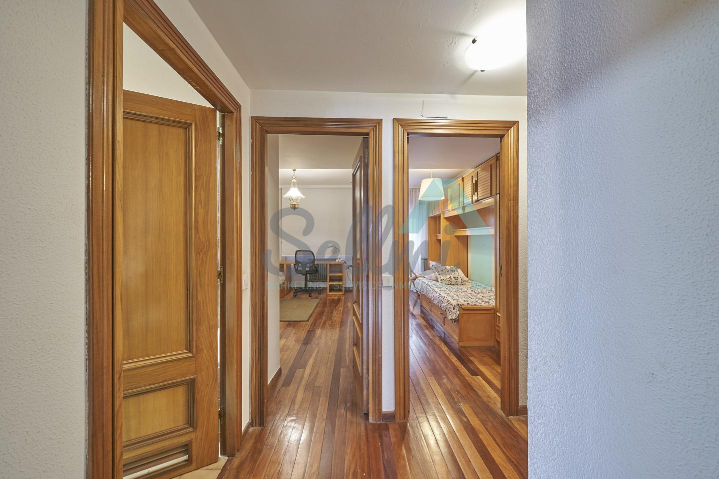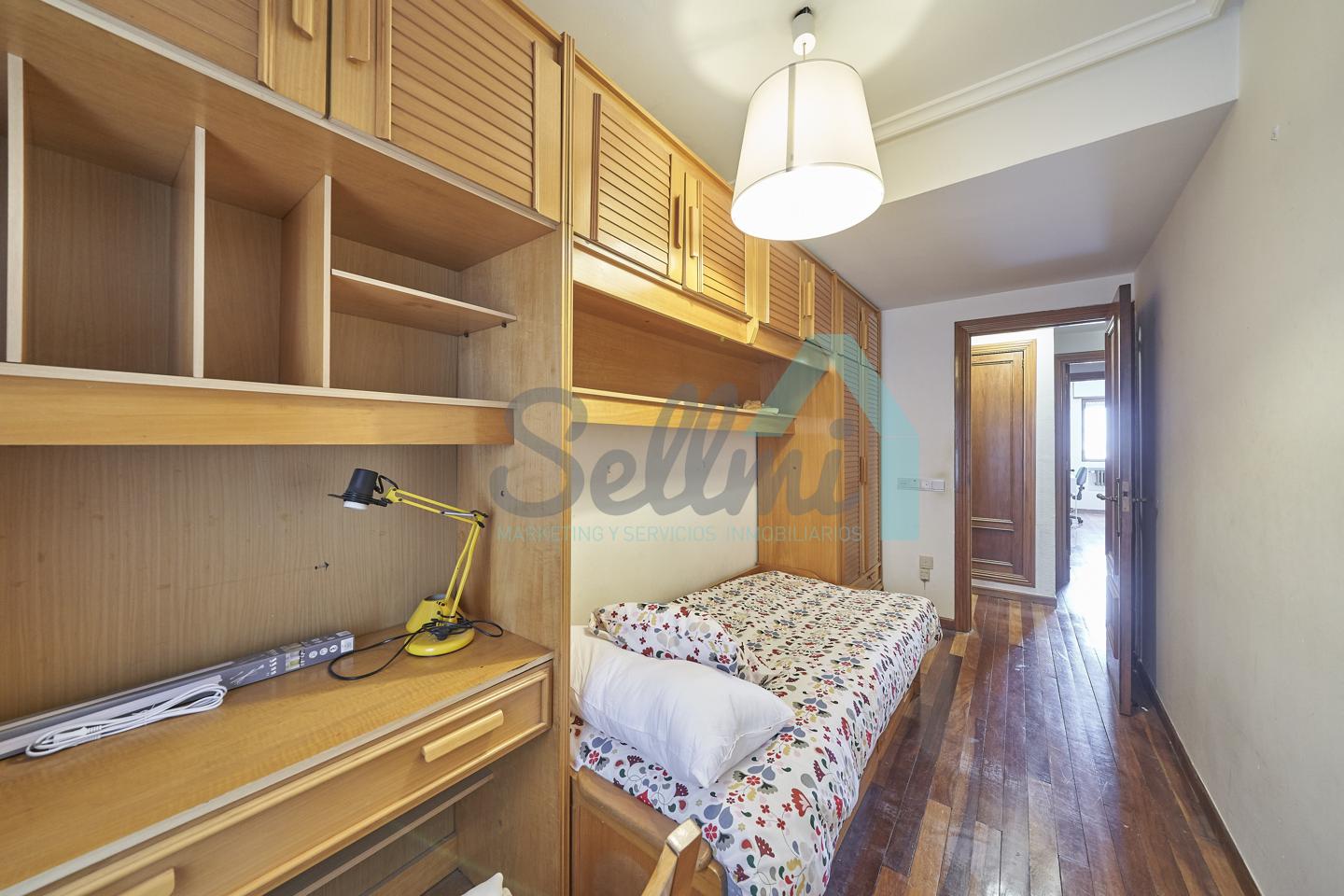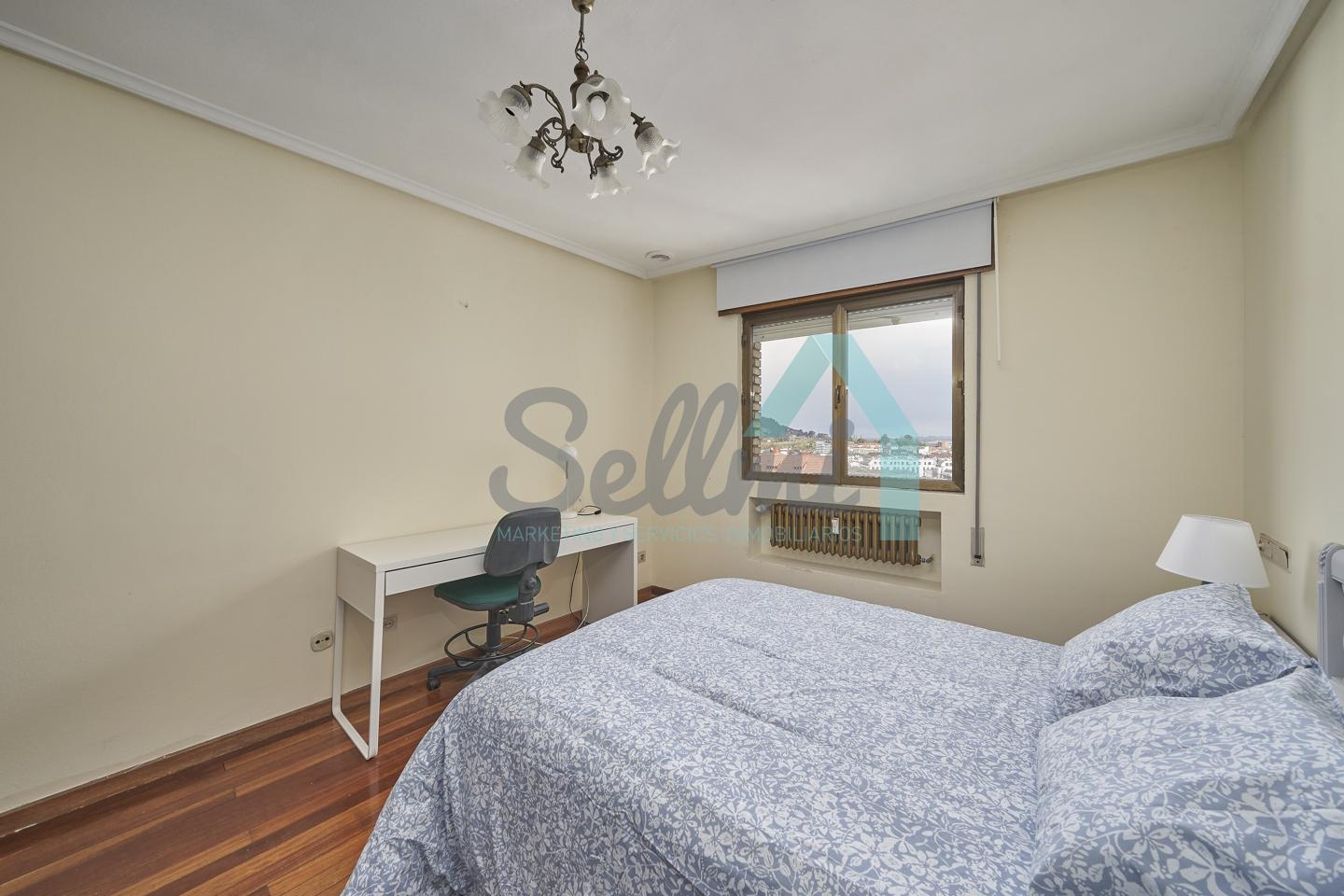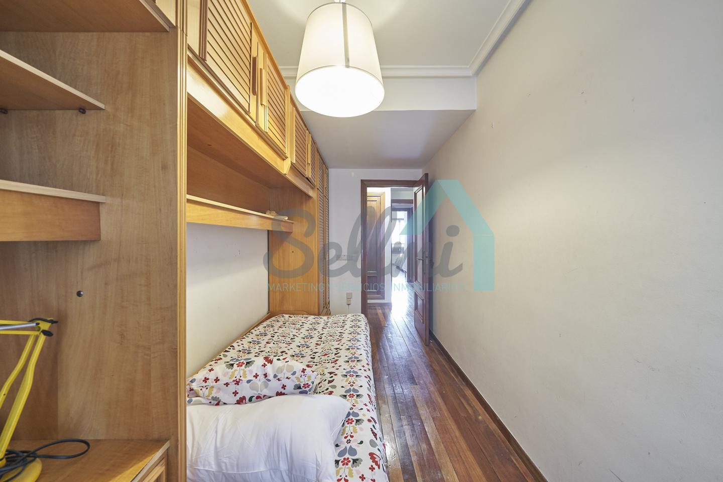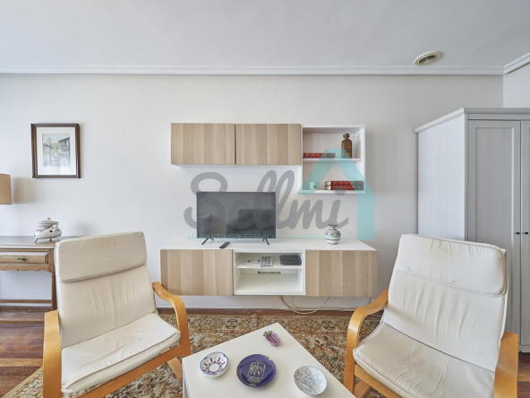 Piso amueblado en alquiler situado en pleno centro de Oviedo. Se encuentra en un edificio construido en 1981, que cuenta con servicios centrales y dos ascensores. Es posterior, con orientación noreste y vista a amplio patio de manzana.