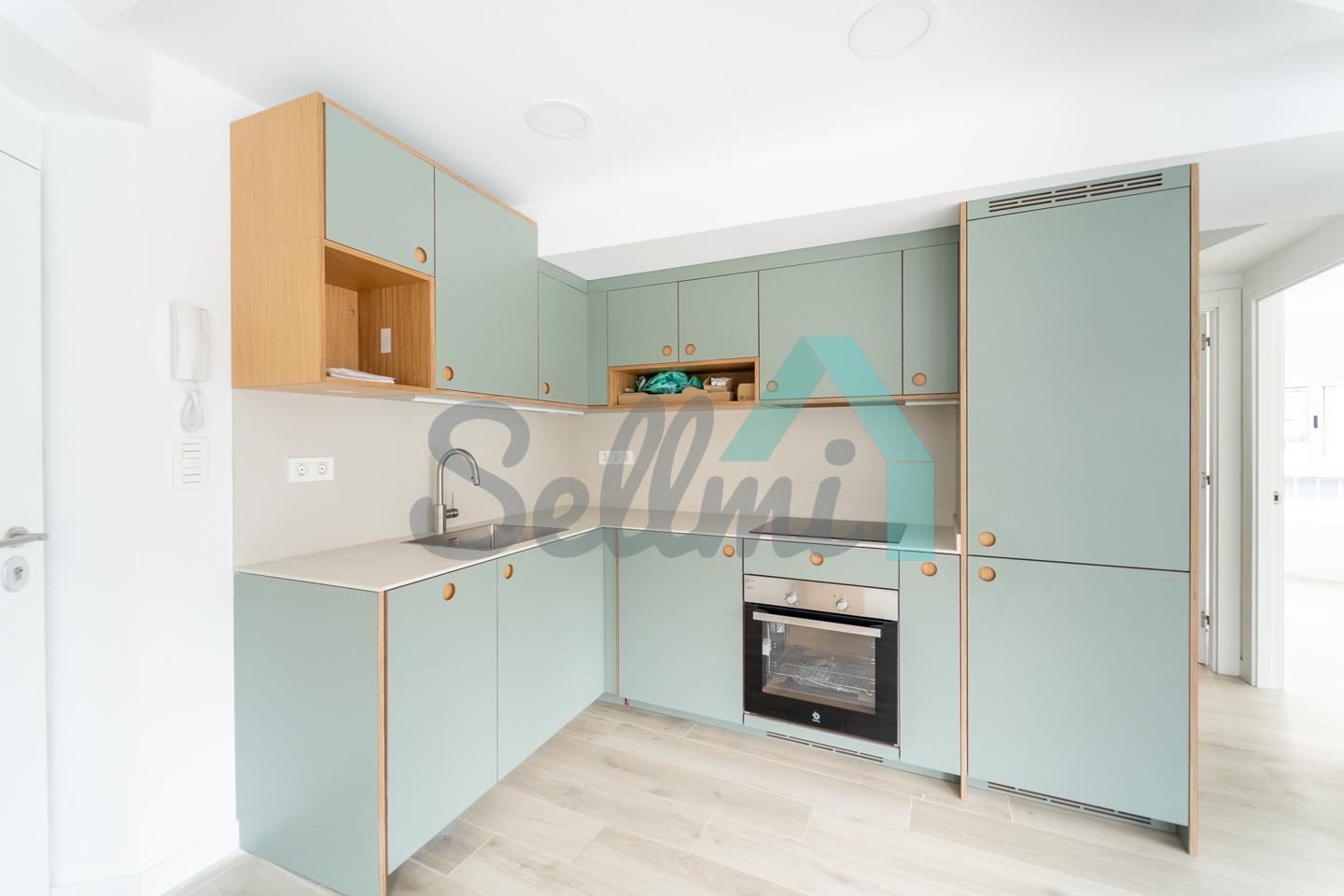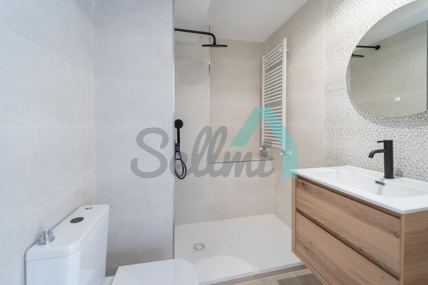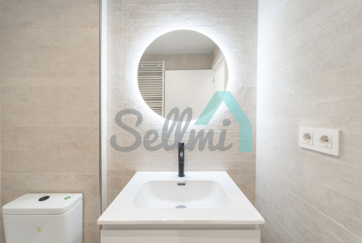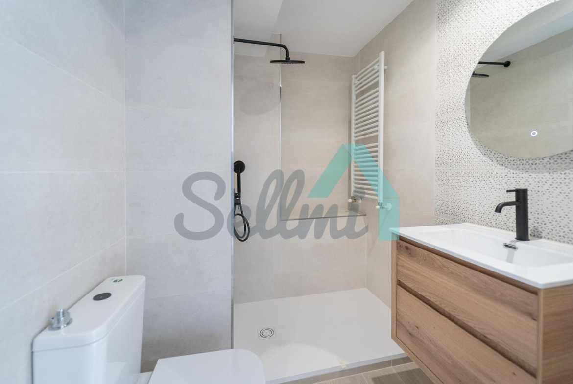 La vivienda, que acaba de ser totalmente reformada, tiene una superficie construida de 89 m2 distribuidos en salón comedor con cocina amueblada y equipada (lavadora-secadora, lavaplatos, combi, cocina de inducción), dos habitaciones (una de ellas con vestidor) y dos baños completos. Es totalmente exterior y muy luminosa, con orientación sur, oeste y norte.