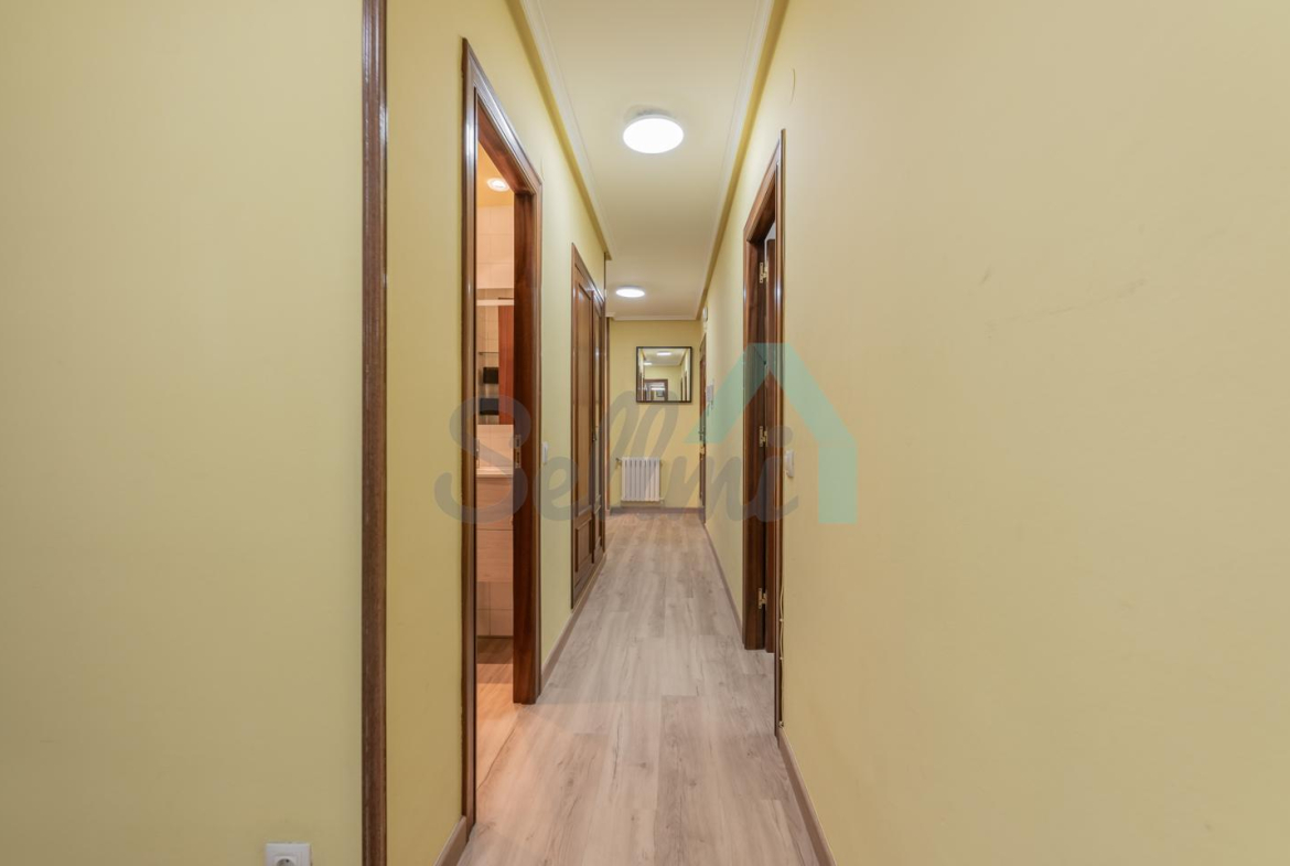 Dispone de calefacción individual de gas ciudad, suelos de tarima y gres, ventanas de doble acristalamiento, armario empotrado en una de las habitaciones, puerta de seguridad, etc.