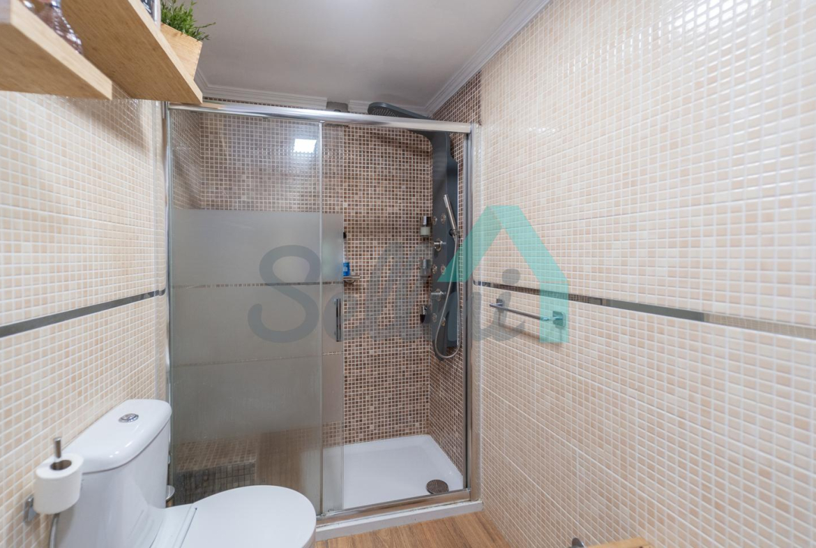 Dispone de suelo de parqué y gres, ventanas de doble acristalamiento, calefacción individual, puerta de seguridad, videoportero, etc.