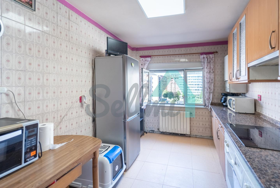 Piso en alquiler situado en San Lázaro, cerca del Parque de Invierno, en Oviedo. Se ubica en la quinta planta de un edificio construido en 1972, sin barreras arquitectónicas y que cuenta con ascensor.