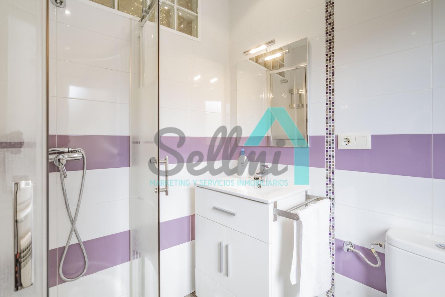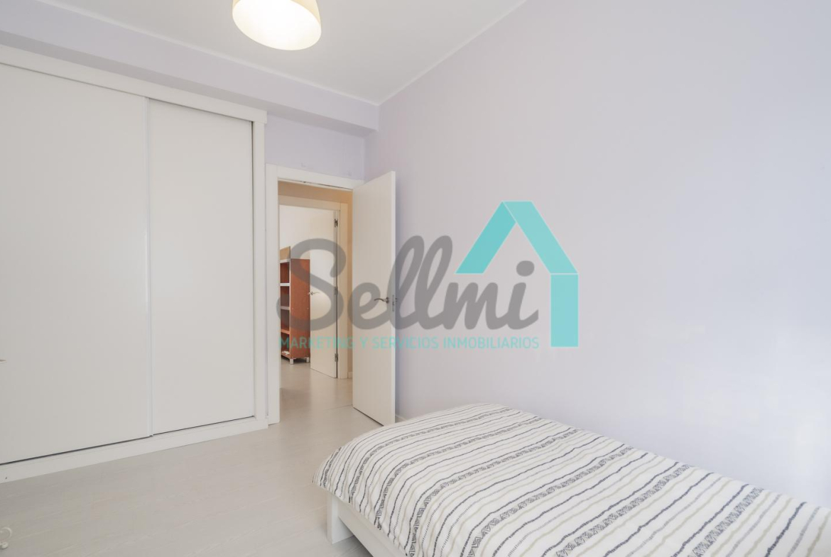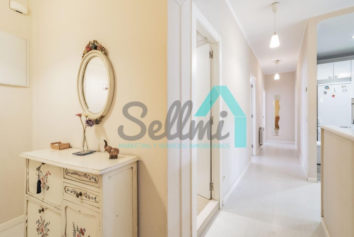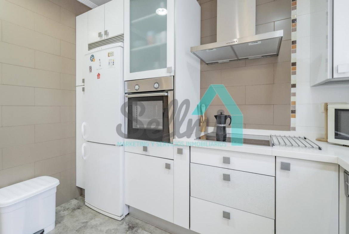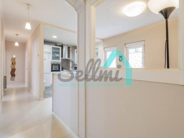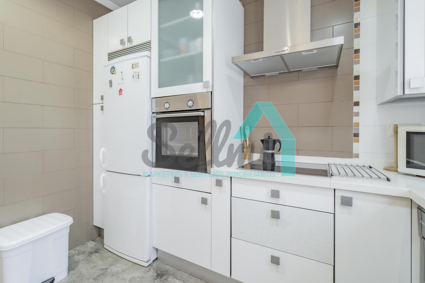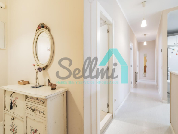 La vivienda, que ha sido totalmente reformada, tiene una superficie construida de 93 m² distribuidos en hall de entrada, salón comedor con cocina amueblada y amueblada, tres habitaciones y dos baños completos. Todas las estancias son exteriores.