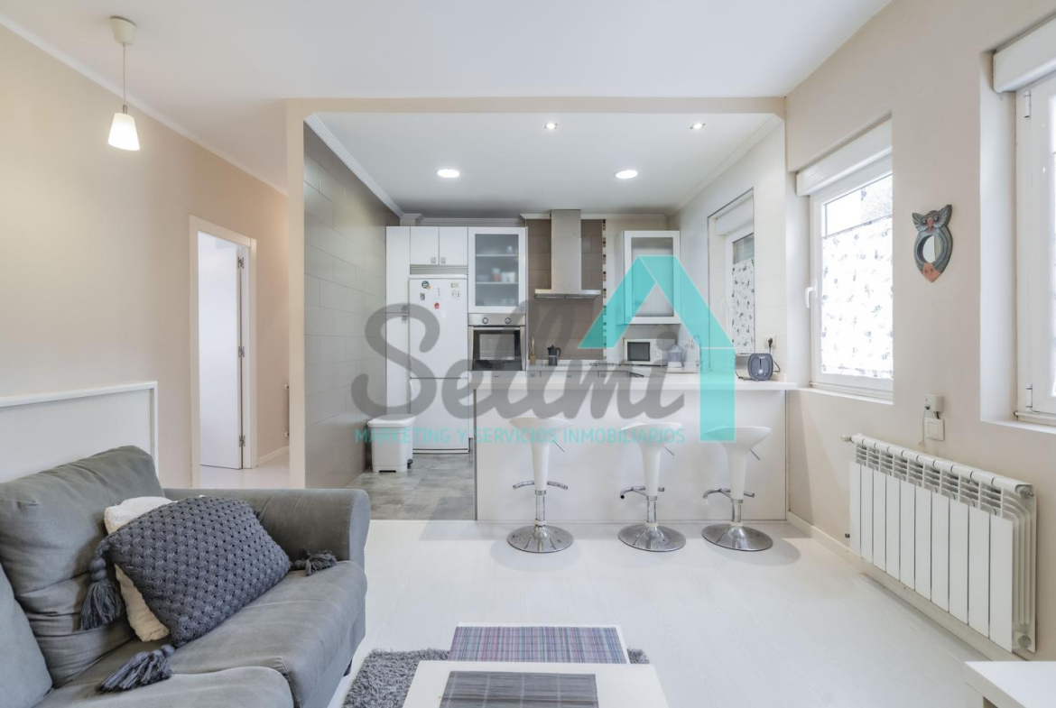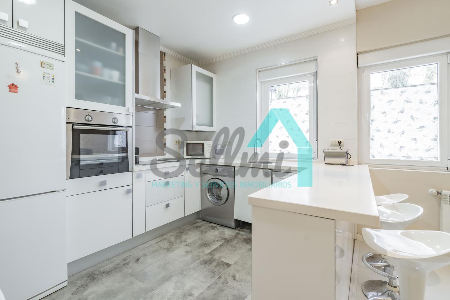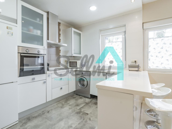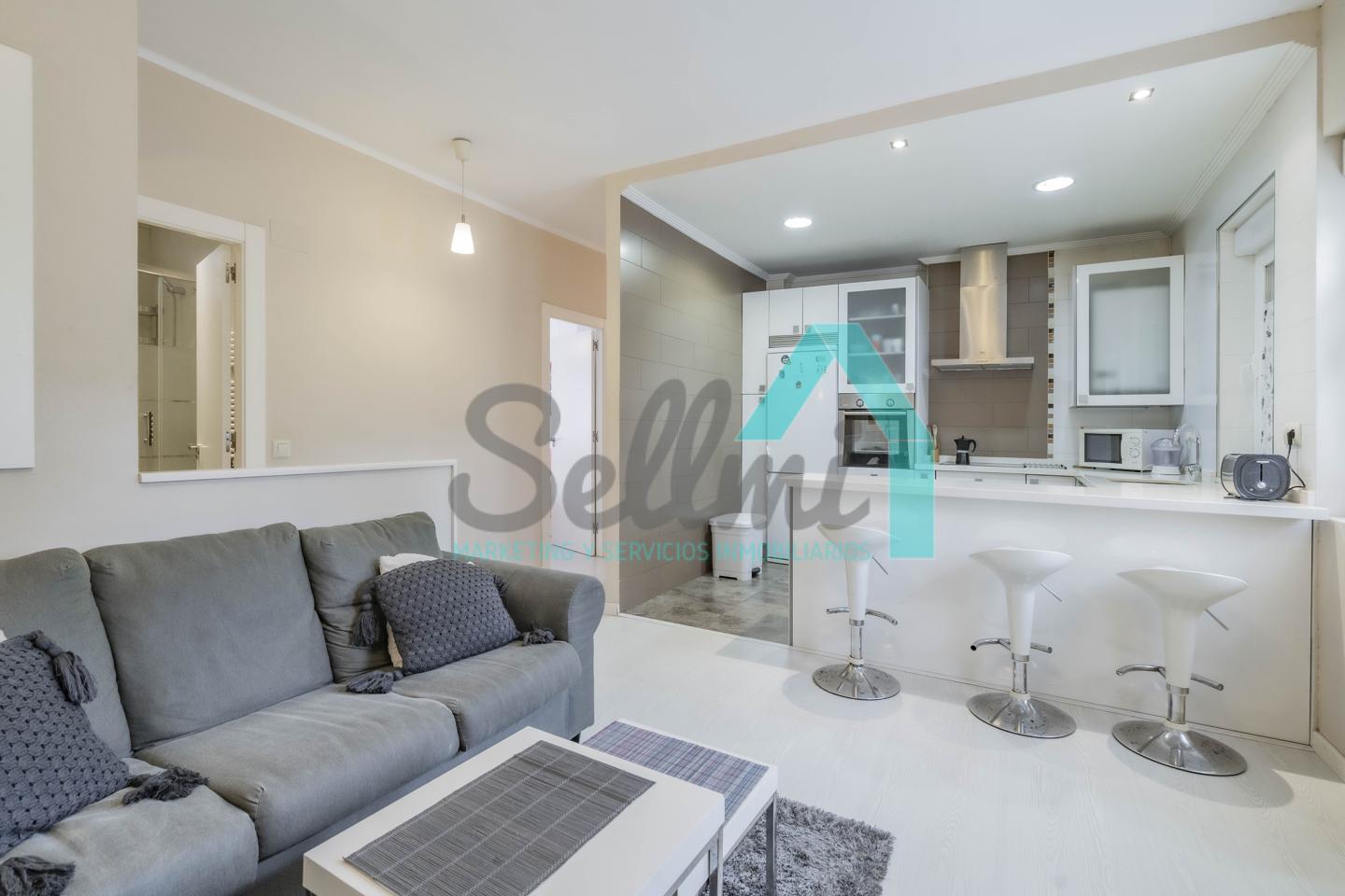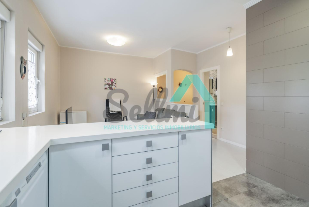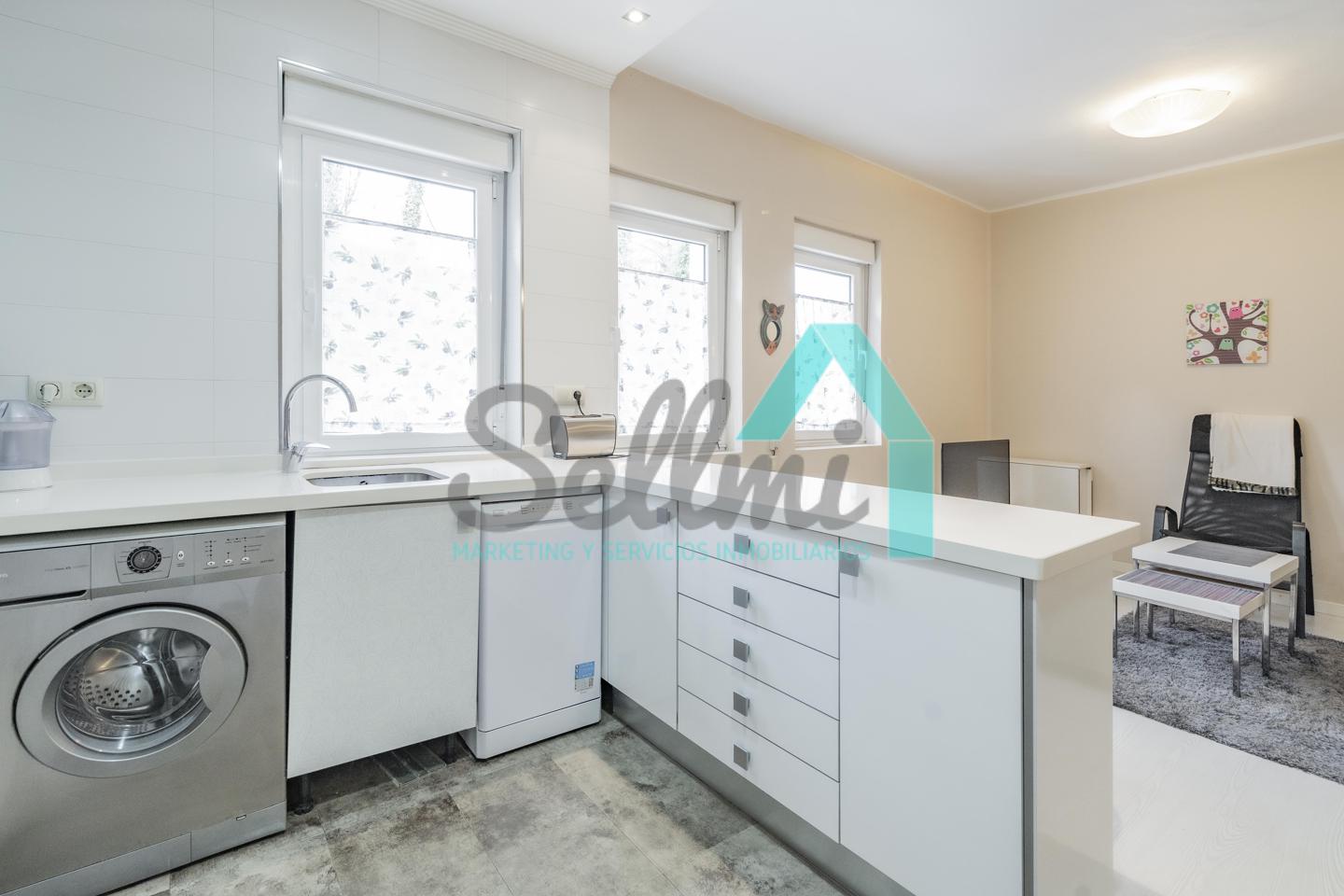 La vivienda, que ha sido totalmente reformada, tiene una superficie construida de 93 m² distribuidos en hall de entrada, salón comedor con cocina amueblada y amueblada, tres habitaciones y dos baños completos. Todas las estancias son exteriores.