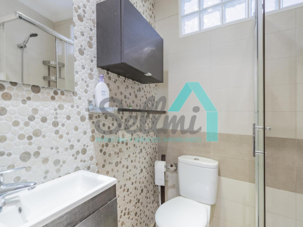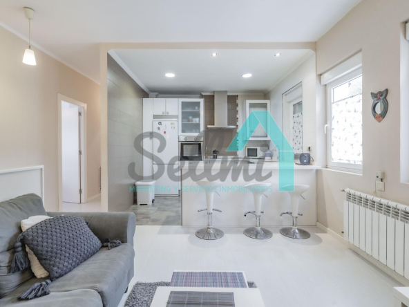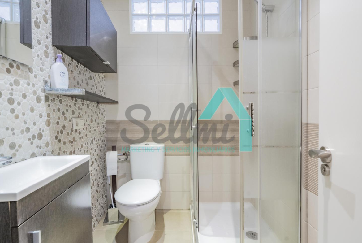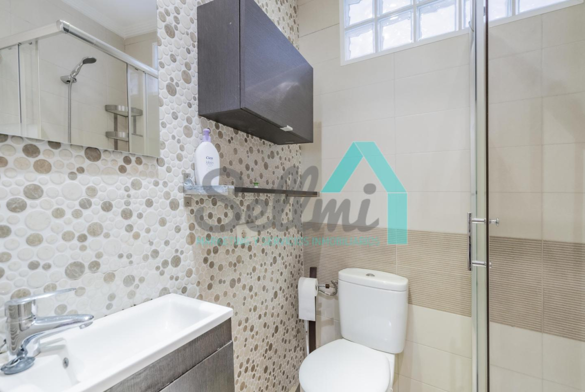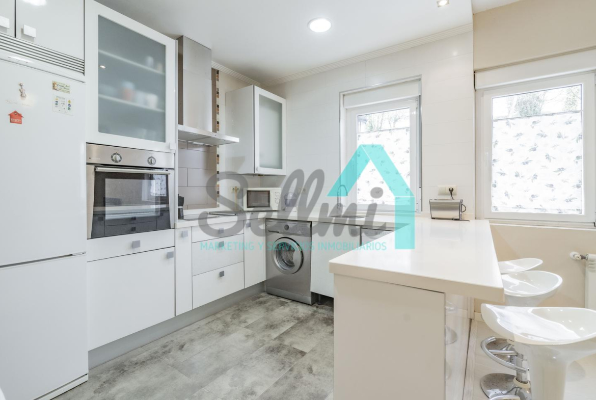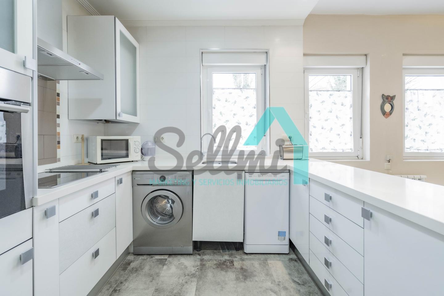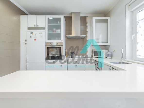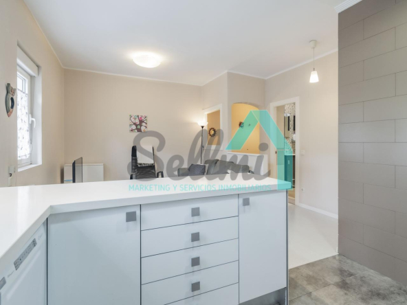 La vivienda, que ha sido totalmente reformada, tiene una superficie construida de 93 m² distribuidos en hall de entrada, salón comedor con cocina amueblada y amueblada, tres habitaciones y dos baños completos. Todas las estancias son exteriores.