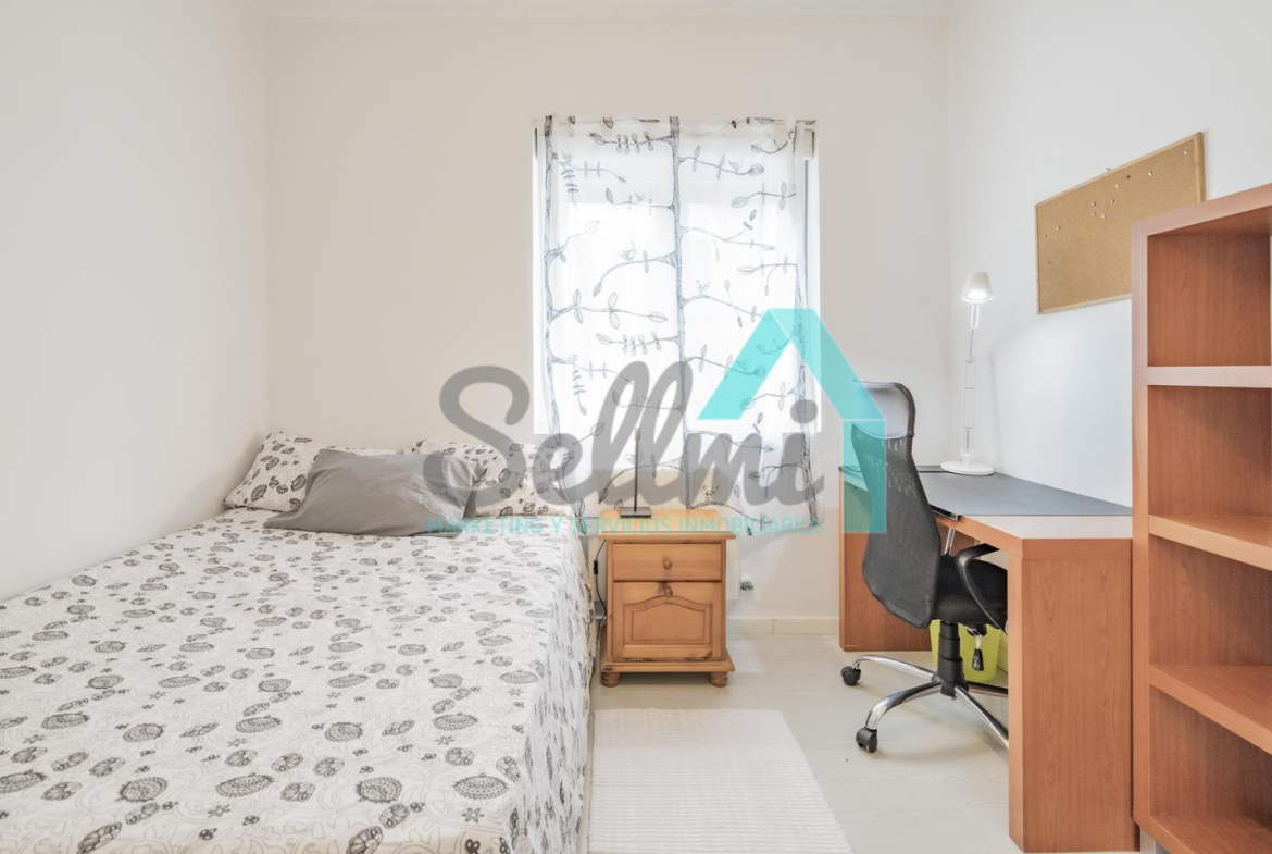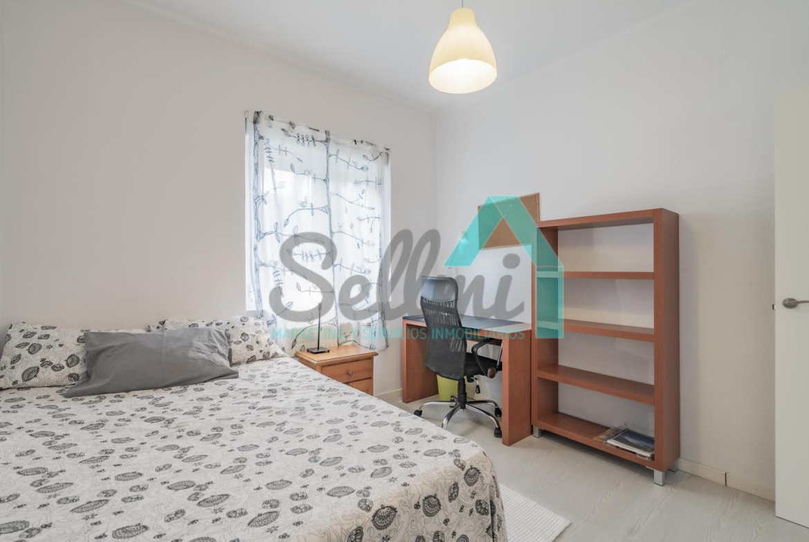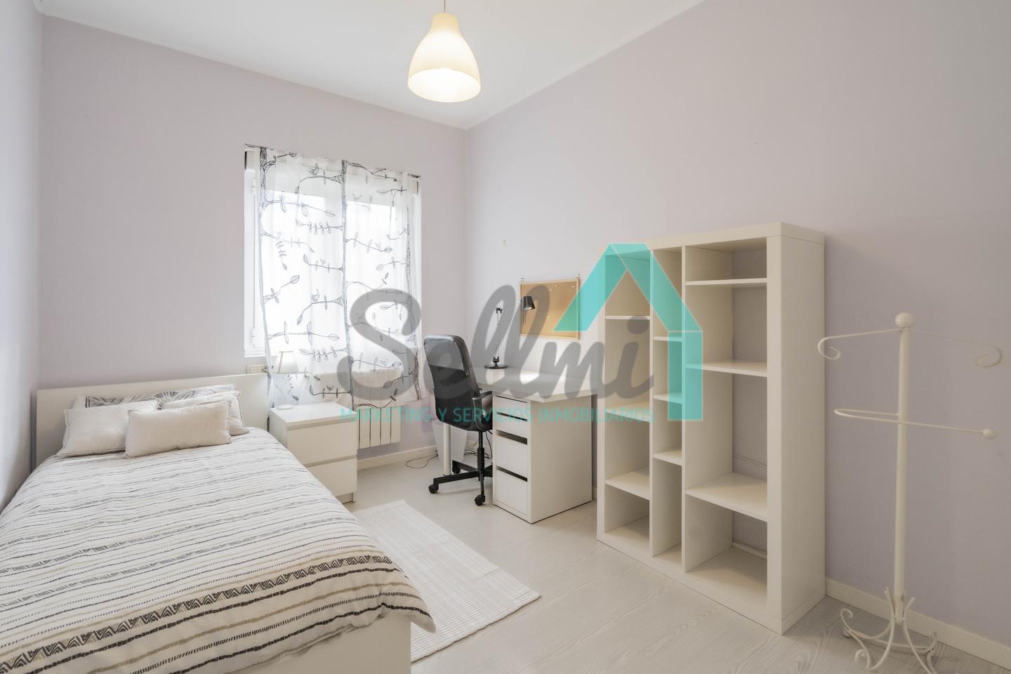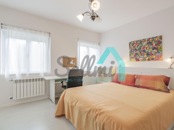 Dispone de suelos de tarima y gres, ventanas de doble acristalamiento, calefacción individual de gas ciudad, mesas de estudio, puerta de seguridad, etc.
