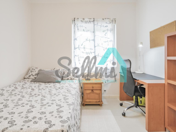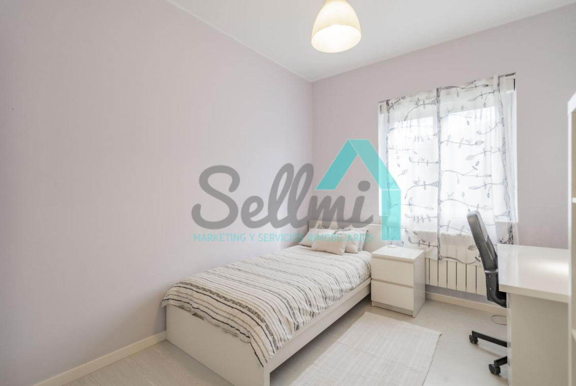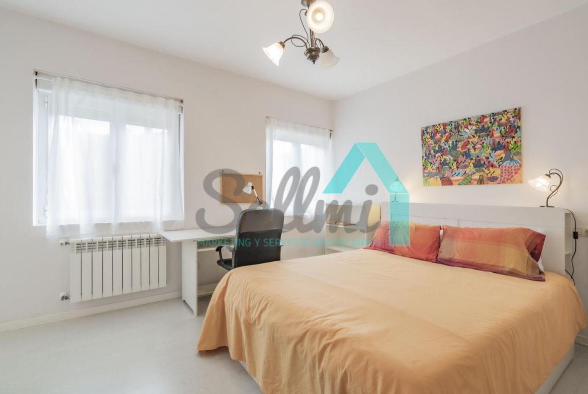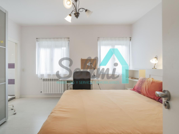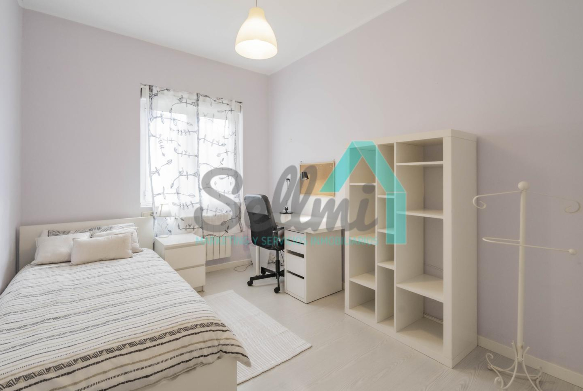 Dispone de suelos de tarima y gres, ventanas de doble acristalamiento, calefacción individual de gas ciudad, mesas de estudio, puerta de seguridad, etc.