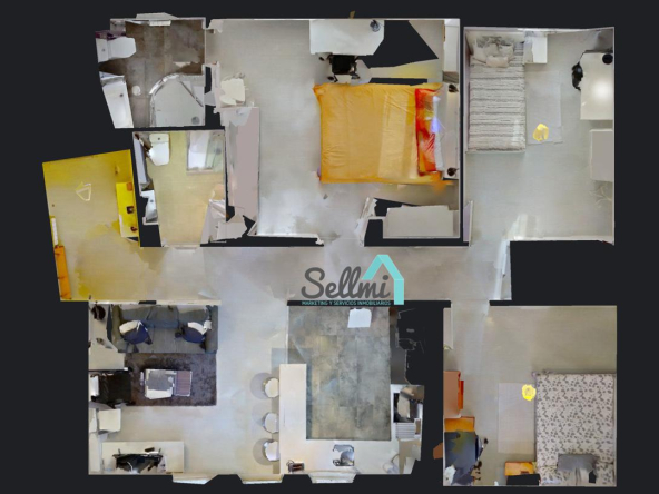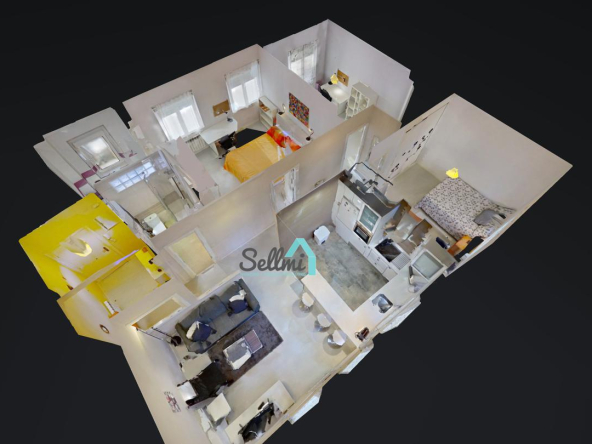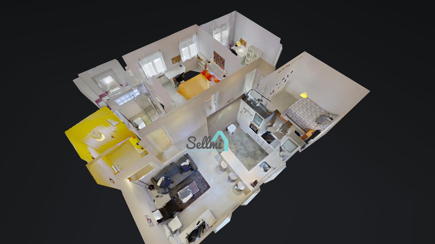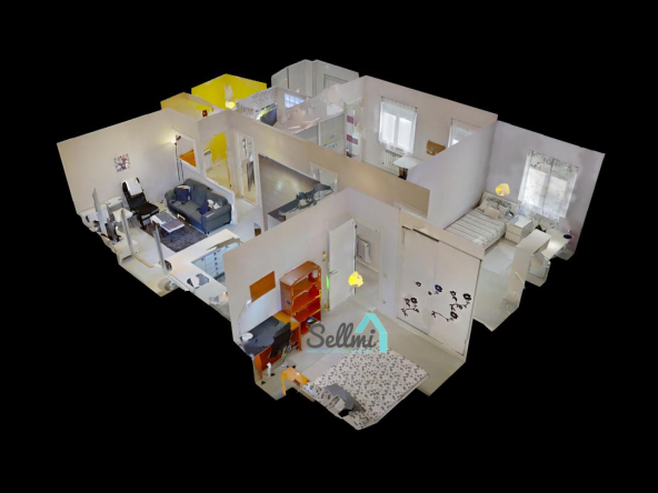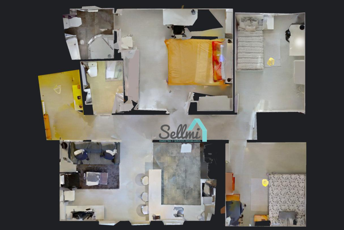 3 habitaciones y 2 baños.