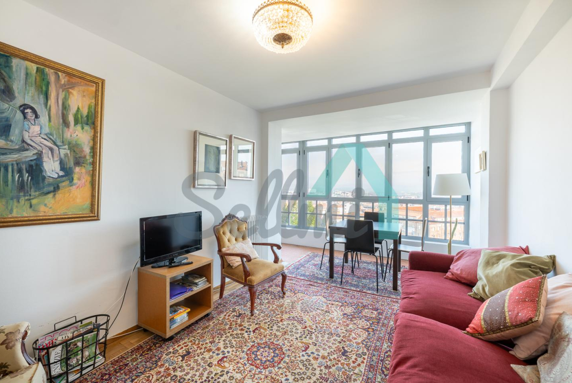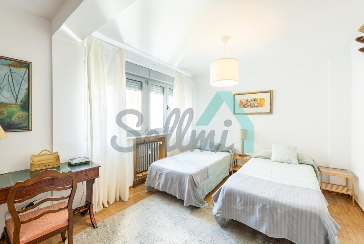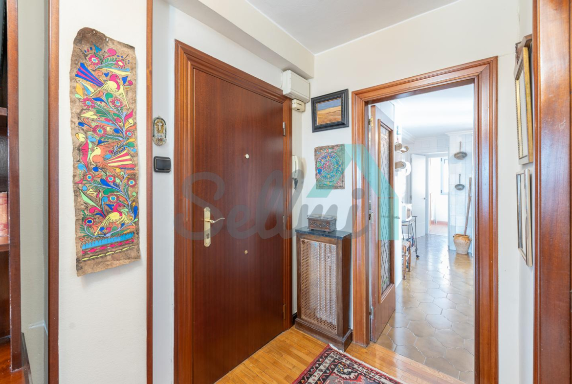 Dispone de calefacción central con contador individual, suelos de parquet y gres, ventanas de doble acristalamiento (recién cambiadas), armarios empotrados, puerta de seguridad, videoportero, etc.