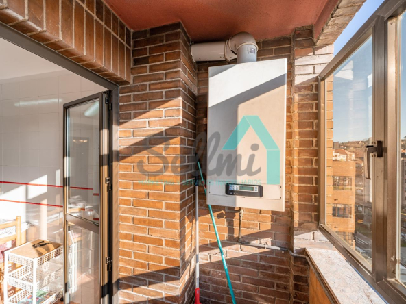 Dispone de calefacción individual de gas ciudad, suelos de parquet y gres, ventanas de doble acristalamiento, armarios empotrados, puerta de seguridad, videoportero, etc.