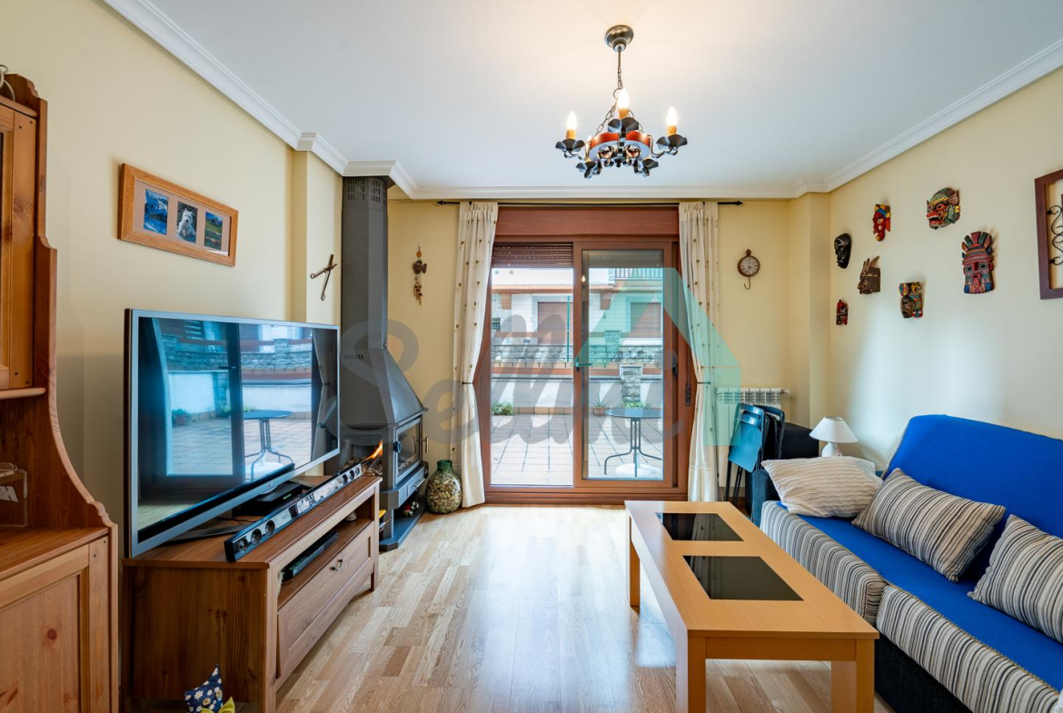 Piso en alquiler en Pola de Somiedo, Asturias, junto al mercado y la piscina municipal. Se ubica en la planta baja de un edificio construido en 2009, sin barreras arquitectónicas y que cuenta con ascensor. Es exterior y muy luminoso, con orientación sur.
