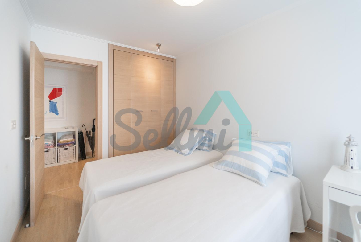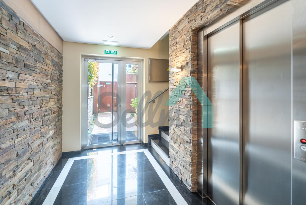 La vivienda, que se encuentra en perfecto estado, tiene una superficie construida de 84 m² distribuidos en hall de entrada, salón comedor, cocina amueblada y equipada, cuarto de lavadora/tendedero, dos habitaciones y dos baños completos. En el precio de venta se incluye una plaza de garaje y dos trasteros (uno en la última planta y otro en el garaje).