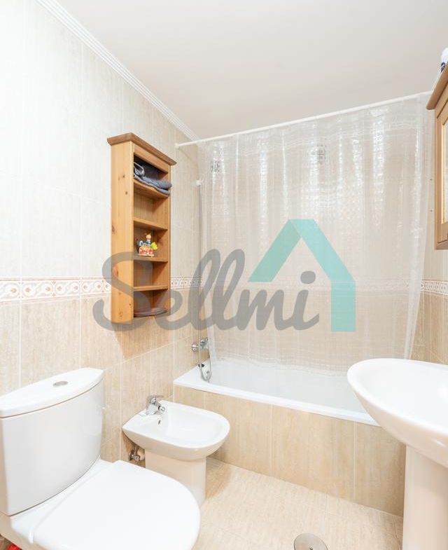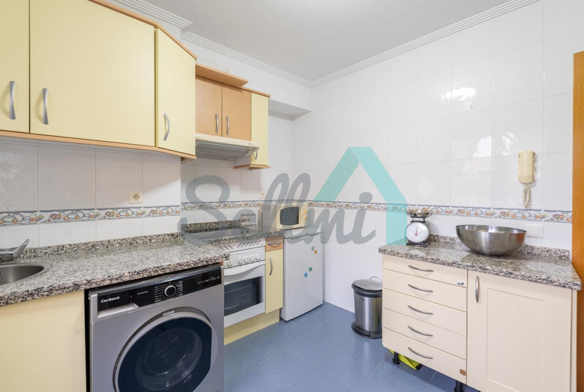 La vivienda, que se encuentra en perfecto estado, tiene una superficie construida de 74 m² distribuidos en hall de entrada, salón comedor, cocina amueblada, dos habitaciones y dos baños completos. Plaza de garaje (de gran tamaño) y trastero incluidos en el precio.