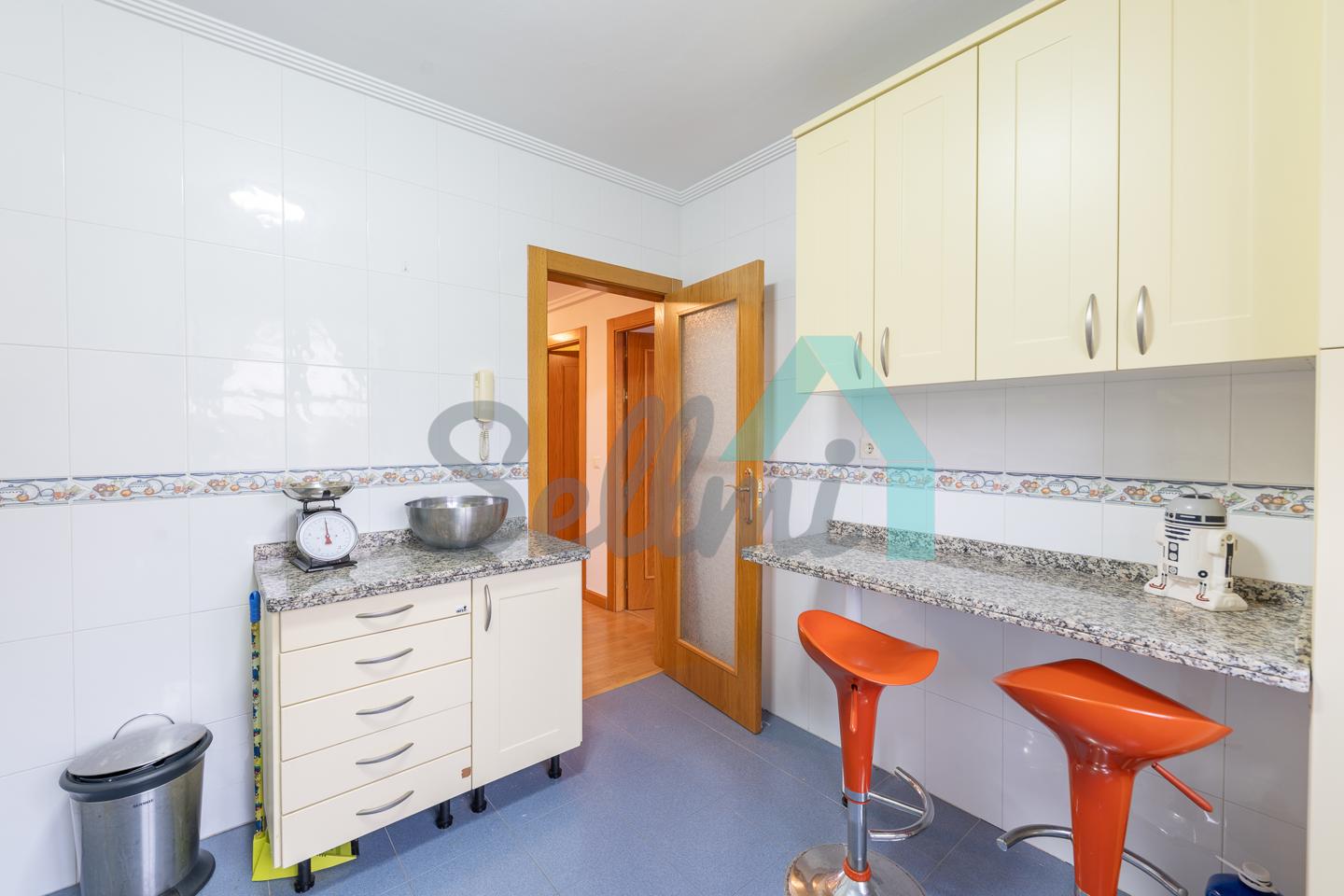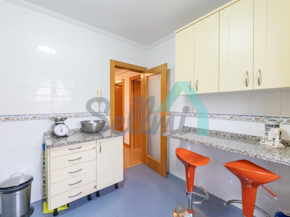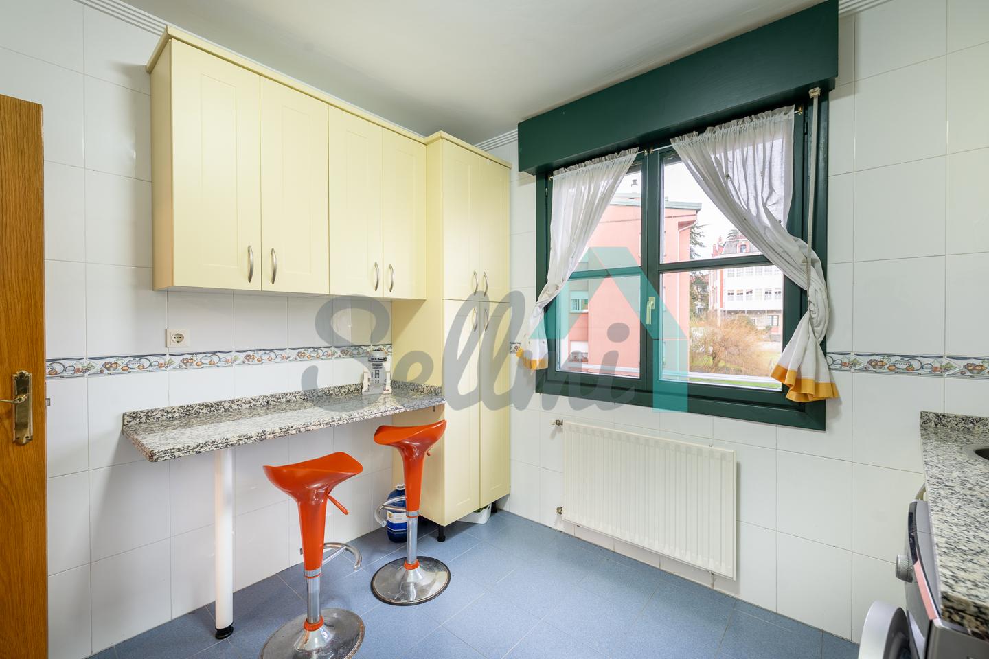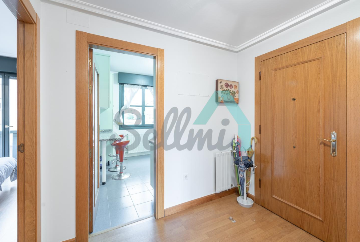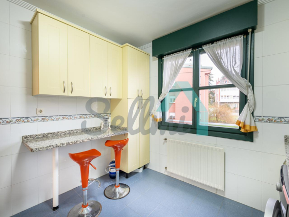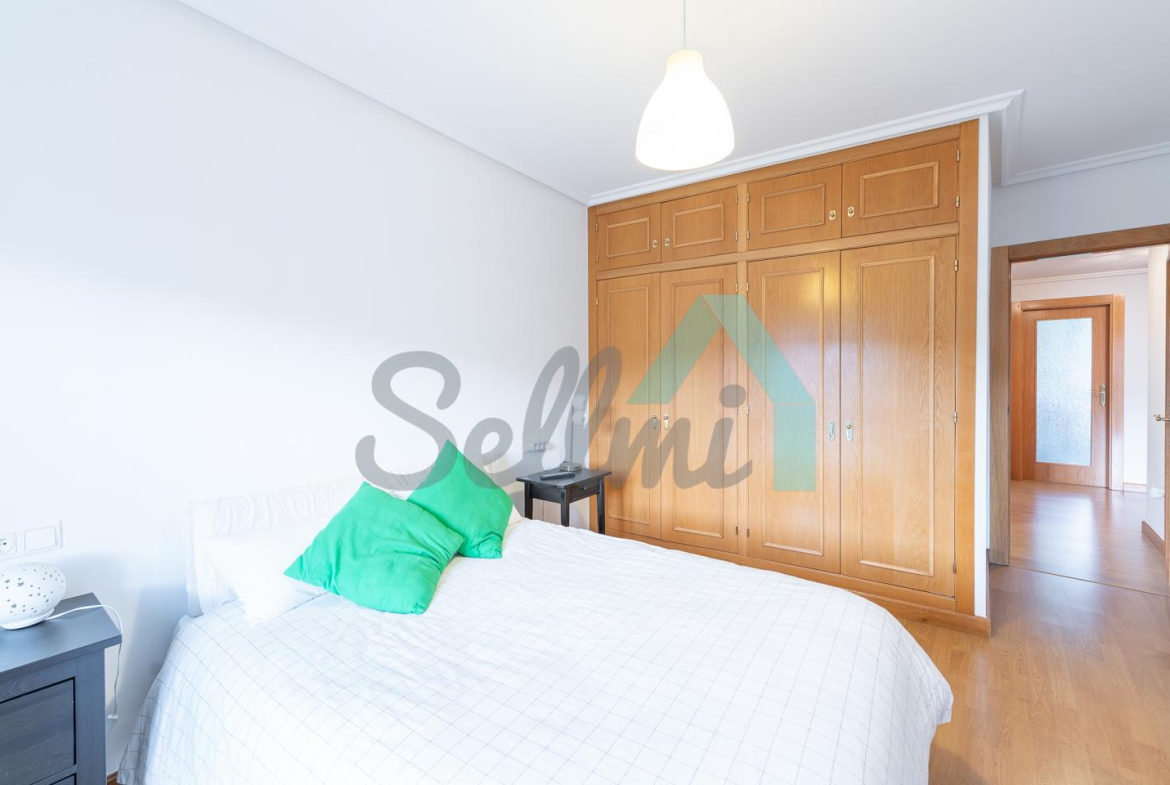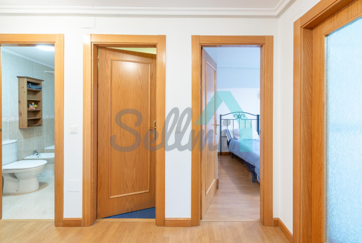 Dispone de suelos de tarima y gres, calefacción central de gasoil, balcones, ventanas de madera con doble acristalamiento, armarios empotrados, puerta de seguridad, etc. Es totalmente exterior, con orientación suroeste y noreste.