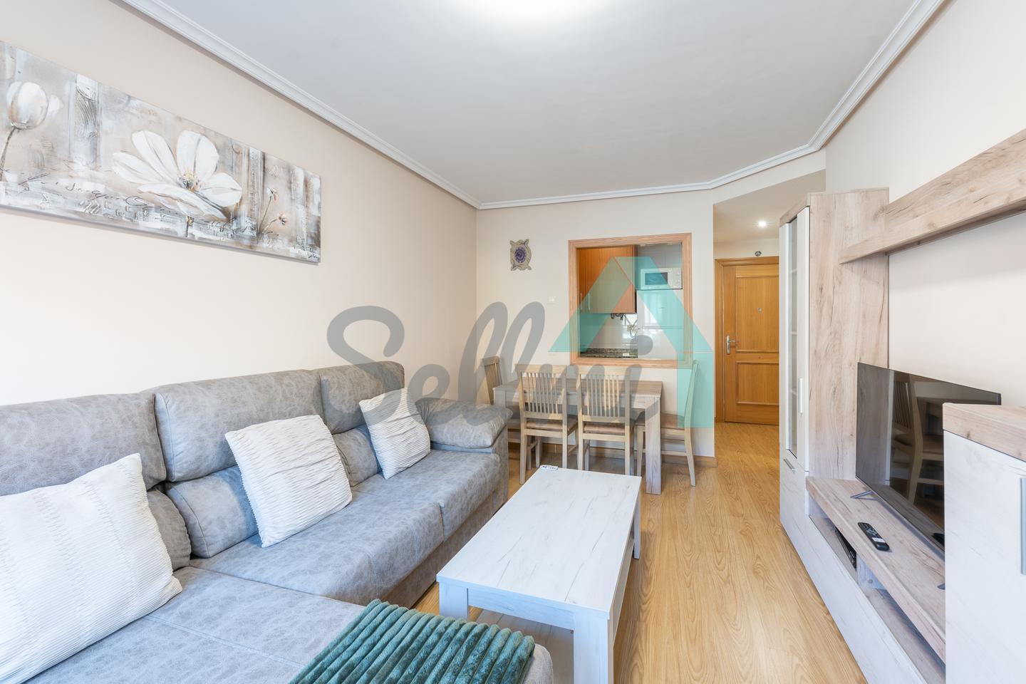Se vende totalmente amueblada y dispone de suelos de tarima y gres, ventanas de doble acristalamiento, armarios empotrados, calefacción individual eléctrica, estufa de pellets, puerta de seguridad, videoportero, etc.