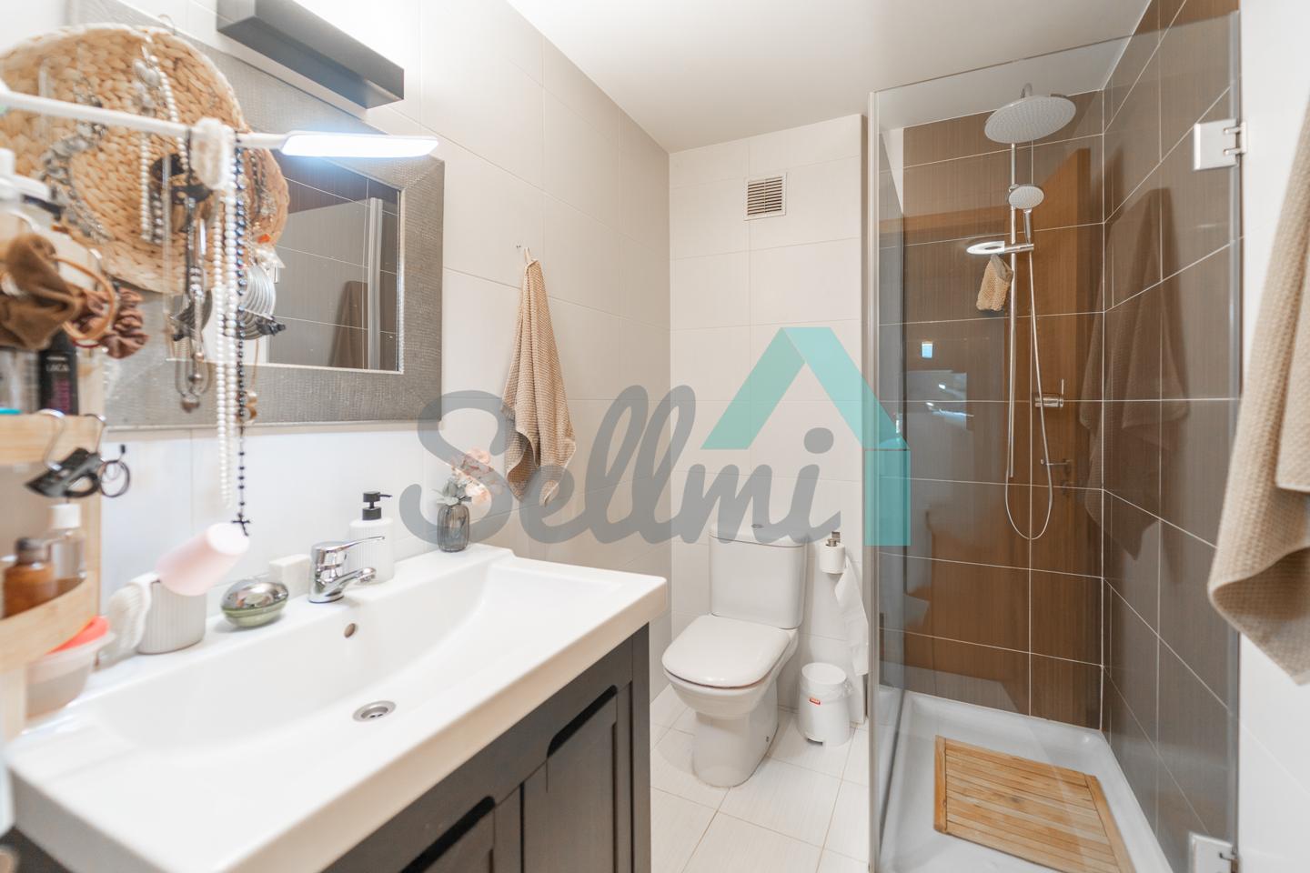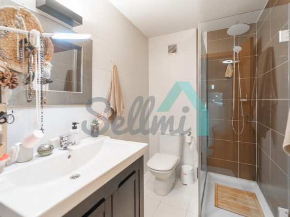 Dispone de suelos de tarima y gres, ventanas de doble acristalamiento, calefacción individual eléctrica, agua caliente por termo eléctrico, puerta de seguridad, etc.