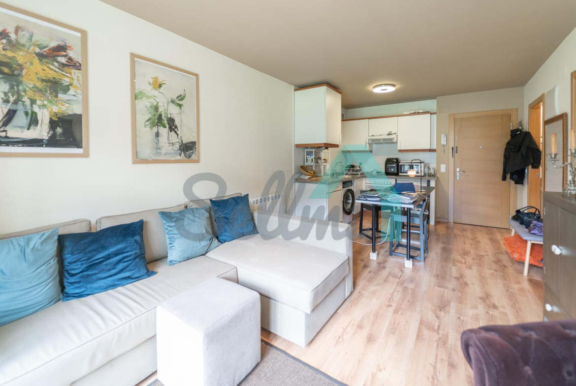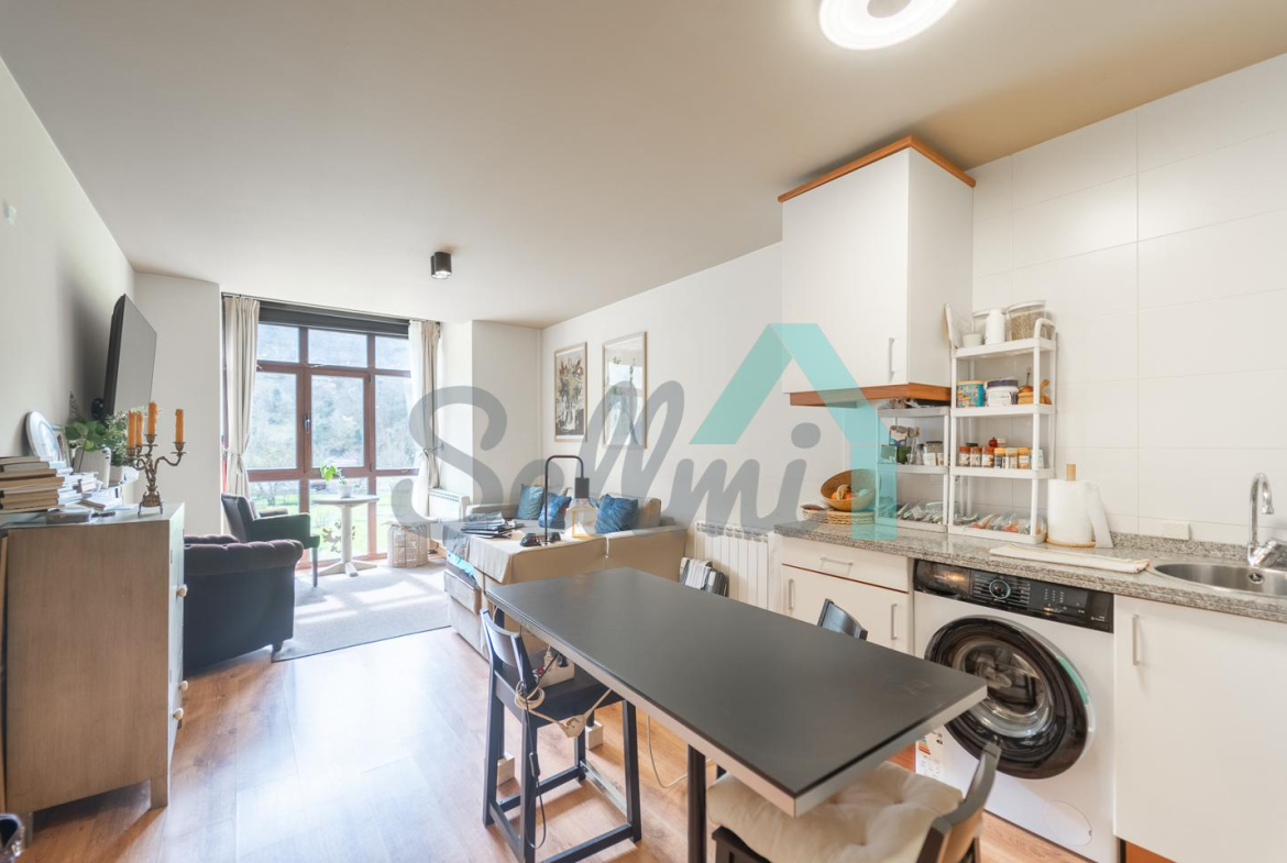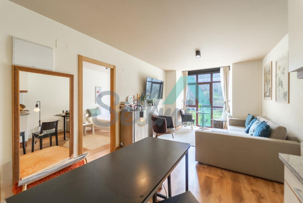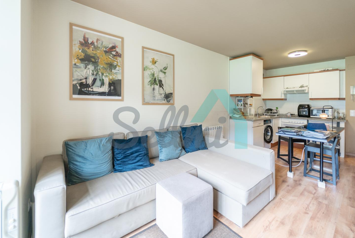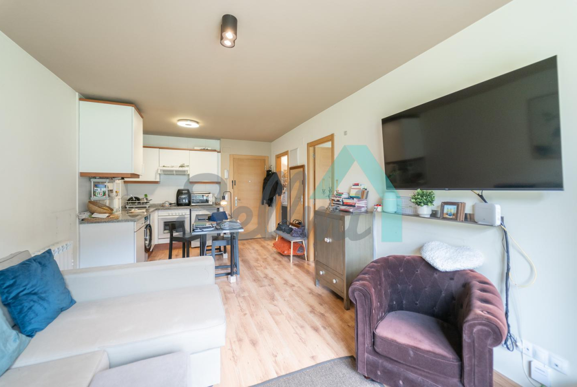 La vivienda, que se encuentra en perfecto estado, tiene una superficie construida de 47 m2 distribuidos en salón comedor con cocina amueblada y equipada, una habitación y un baño completo. Plaza de garaje y trastero incluidos en el precio (con acceso directo en ascensor).