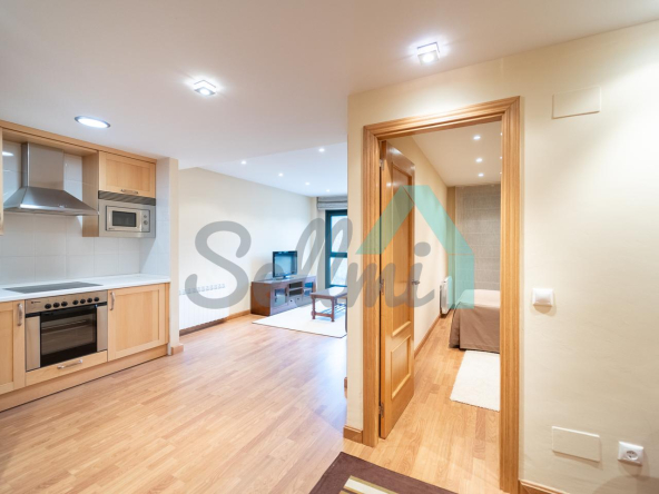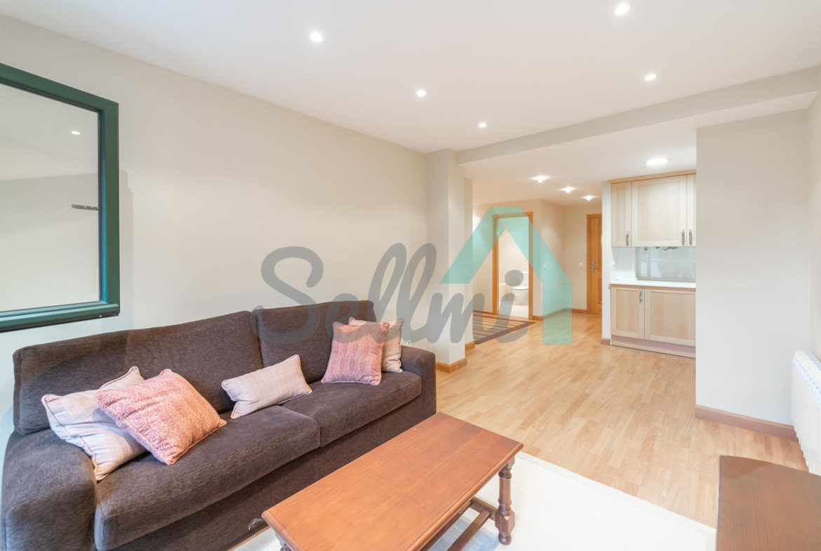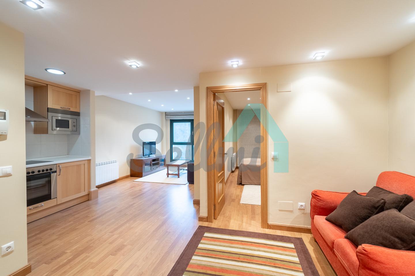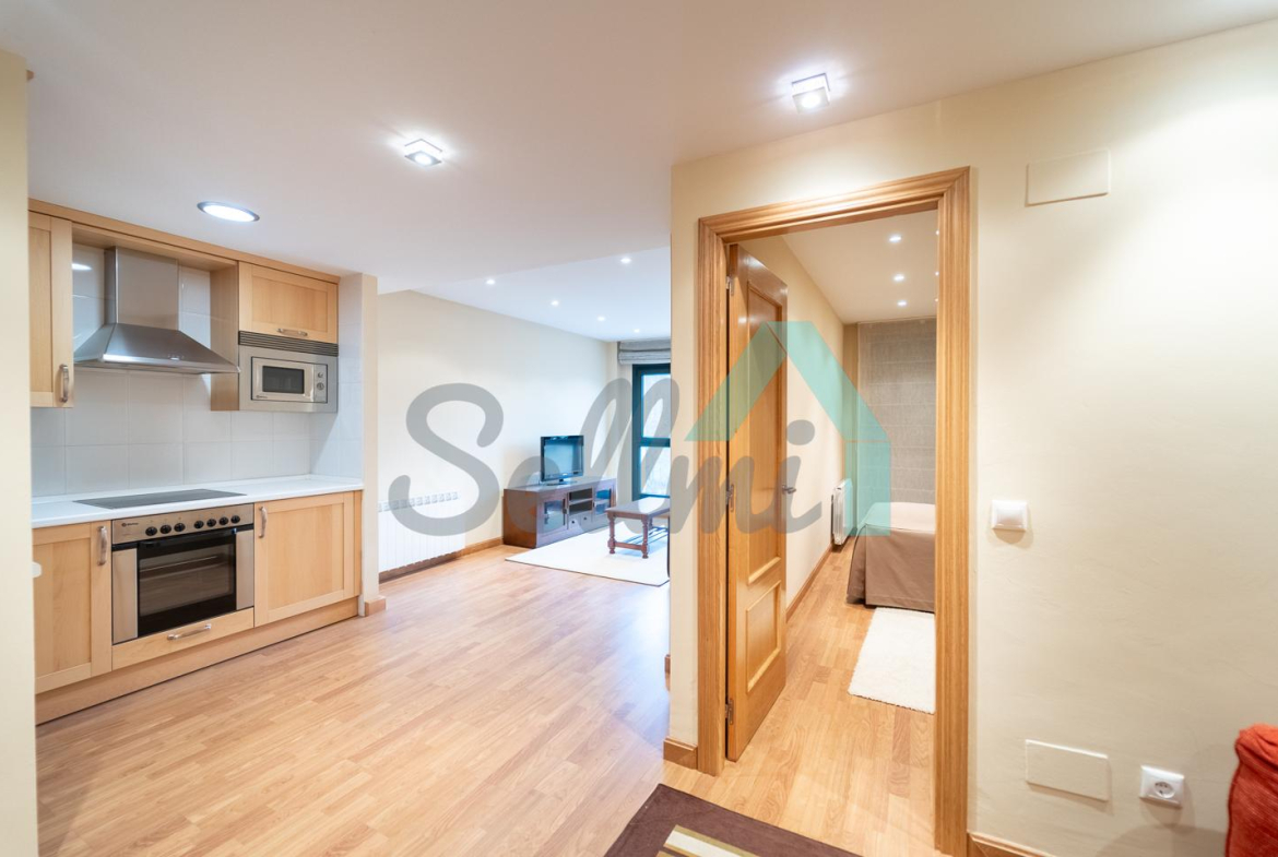 La vivienda, que se encuentra en perfecto estado, tiene una superficie construida de 52 m2 distribuidos en hall de entrada, salón comedor, cocina amueblada y equipada (vitrocerámica, lavadora, microondas integrado, campana extractora y nevera), una habitación y un baño completo. Trastero incluido en el precio, situado en planta baja y con guardaesquis. Dispone de óculos integrados en el techo en todas las instancias.