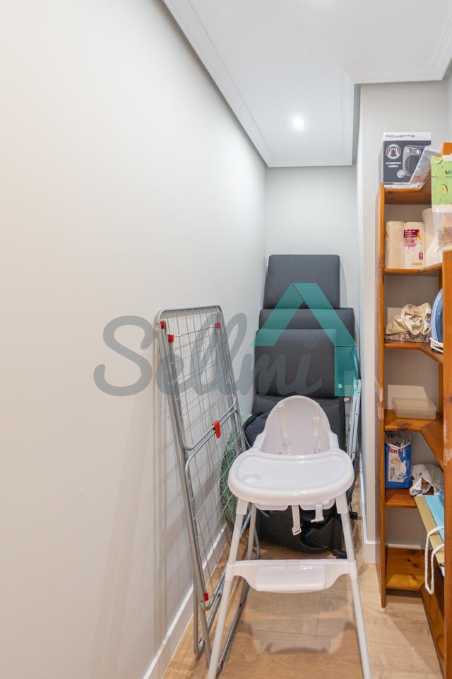 La vivienda, que se encuentra en perfecto estado, tiene una superficie construida de 82 m2 distribuidos en hall de entrada, salón comedor con cocina amueblada y equipada (placa de inducción, horno, campana extractora, frigorífico, lavavajillas y lavadora), una amplia terraza, dos habitaciones, un baño completo y un cuarto de almacenaje.
