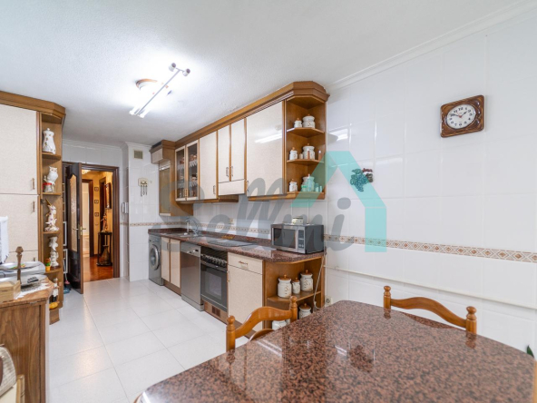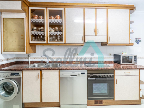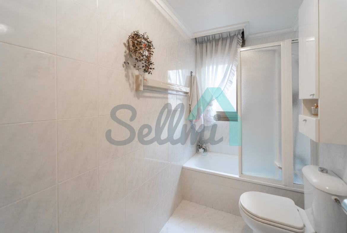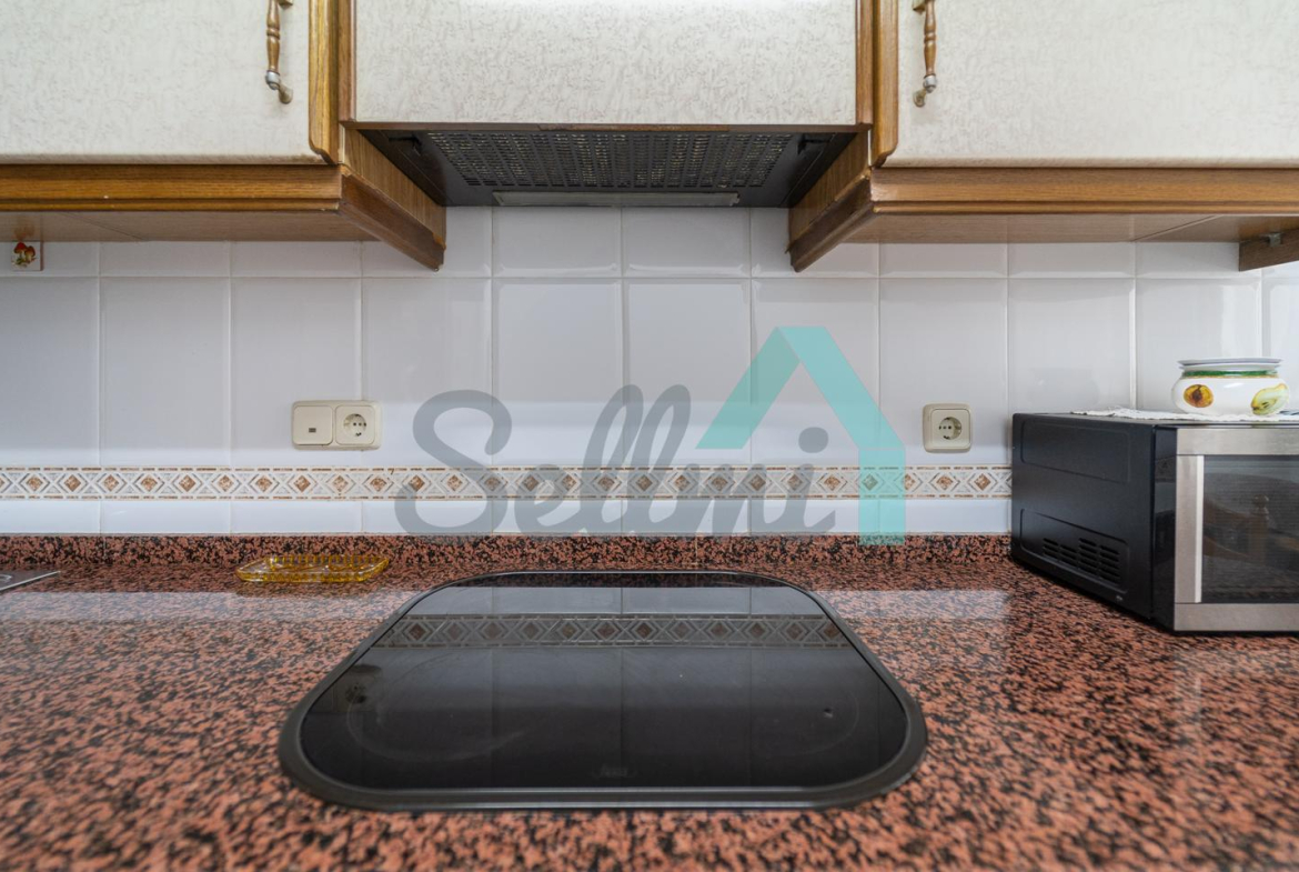 La vivienda, que se encuentra en muy buen estado, tiene una superficie construida de 102 m2 distribuidos en hall de entrada, salón comedor, amplia cocina amueblada, tres amplias habitaciones de más de 13 m2 cada una y dos baños completos, uno de ellos con ventana. El dormitorio principal cuenta con baño en suite y armario empotrado.