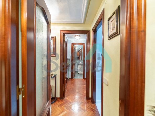 Dispone de suelos de parqué y gres, calefacción individual de gas natural, ventanas de aluminio color dorado con doble acristalamiento, puerta de seguridad, etc. Es exterior y muy luminoso, con orientación norte (calle) y sur (amplio patio de manzana).