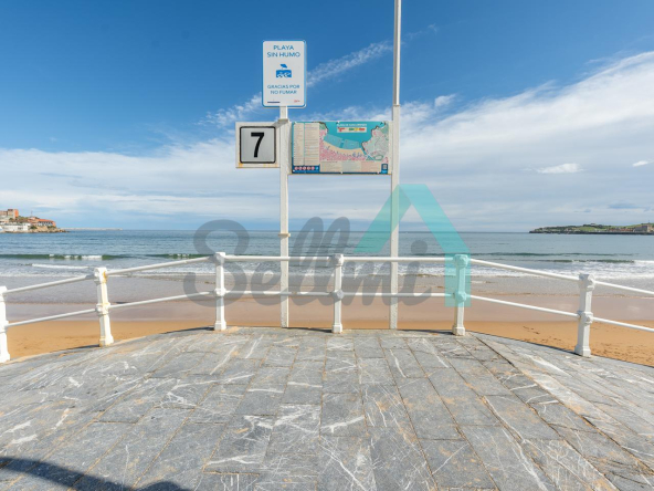 Piso en venta situado en primera línea de la Playa de San Lorenzo (escalera 7), Gijón. Se ubica en la primera planta de un edificio construido en 1971, sin barreras arquitectónicas y que cuenta con dos ascensores.