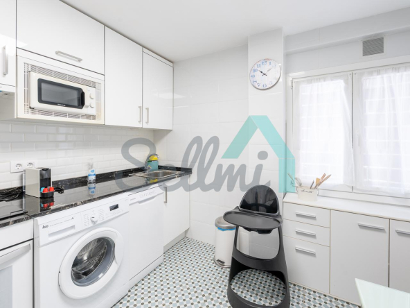 Dispone de suelos de tarima y gres, calefacción individual eléctrica, armarios empotrados, ventanas de doble acristalamiento, puerta de seguridad, videoportero, etc. Es posterior pero muy luminoso, con orientación suroeste y vistas a amplio patio de manzana.