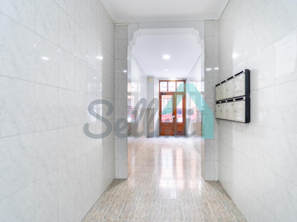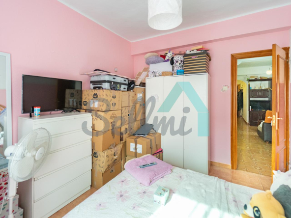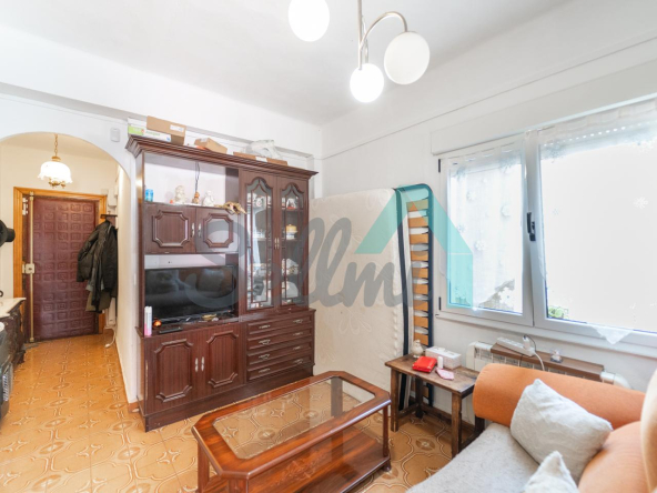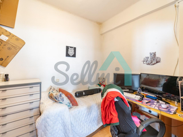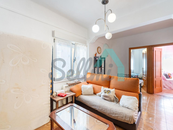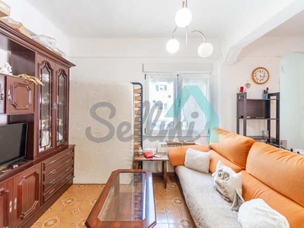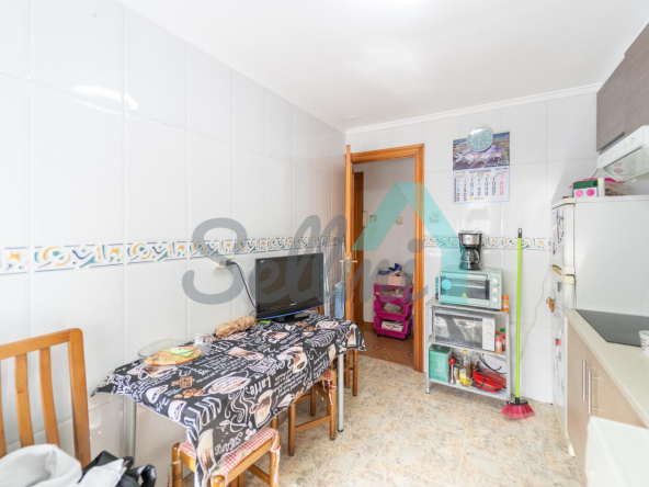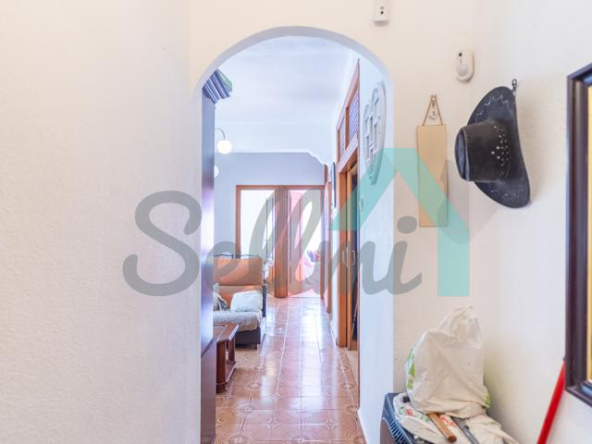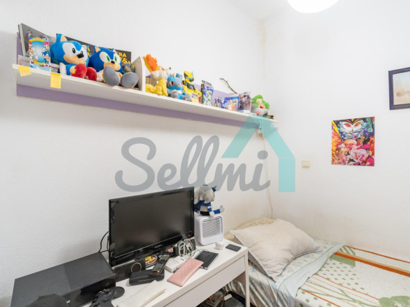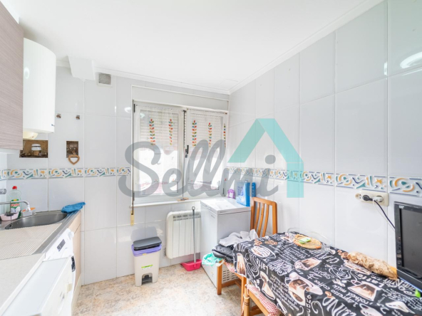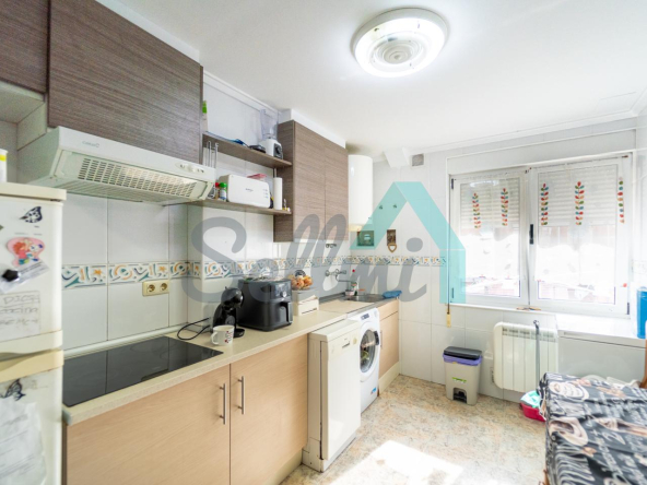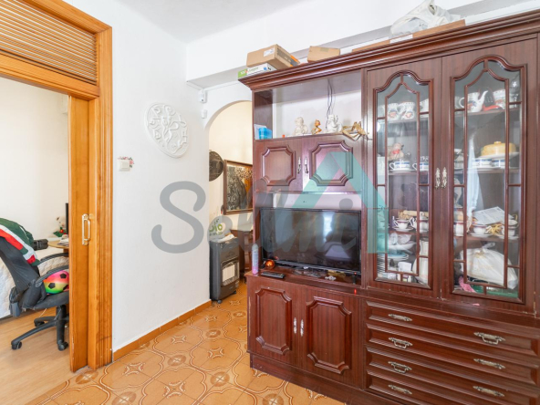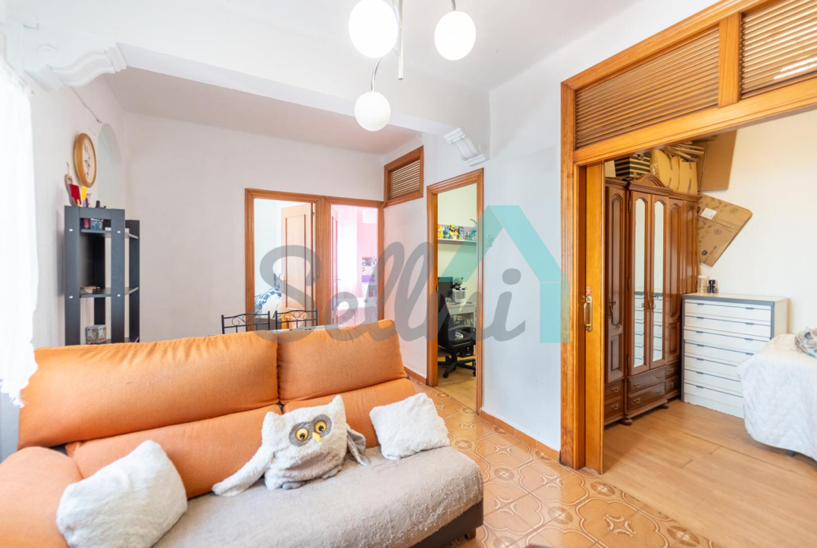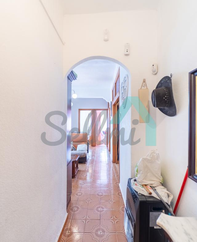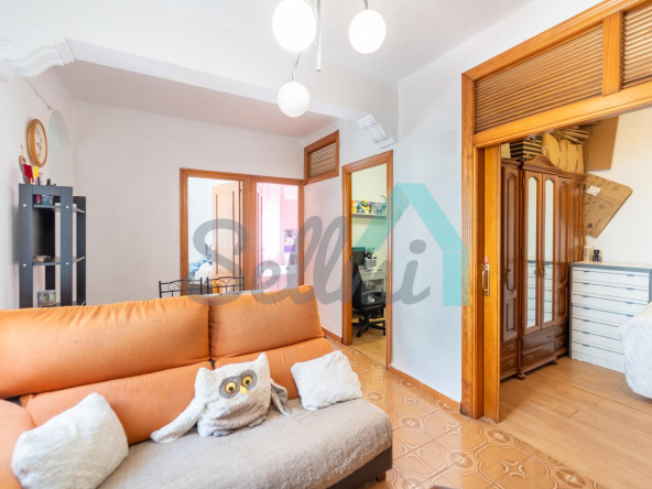 La vivienda tiene una superficie construida de 77 m2 distribuidos en hall de entrada, salón comedor, cocina amueblada y equipada, dos habitaciones y un baño completo. Actualmente el salón está dividido para disponer de otras dos habitaciones (sin ventana). Cuenta con una carbonera en el portal.