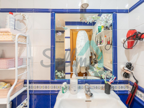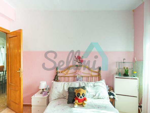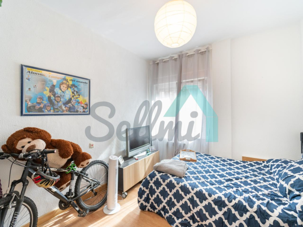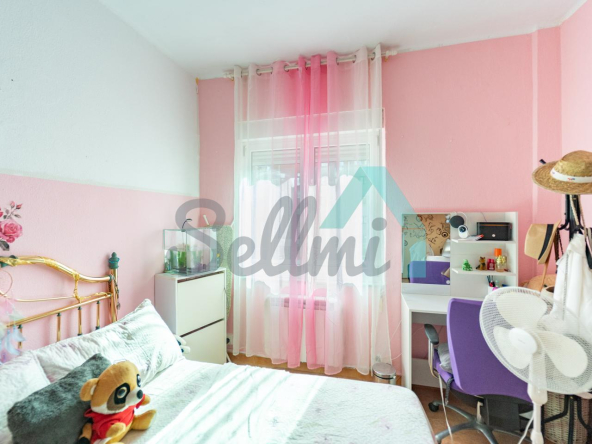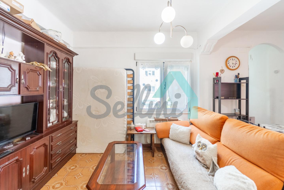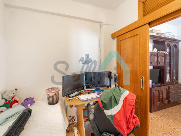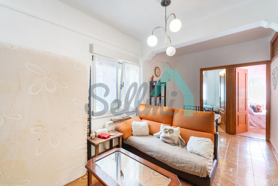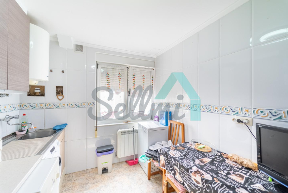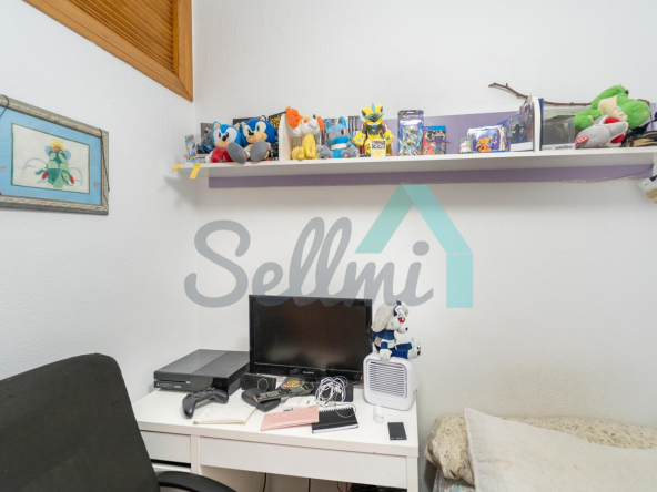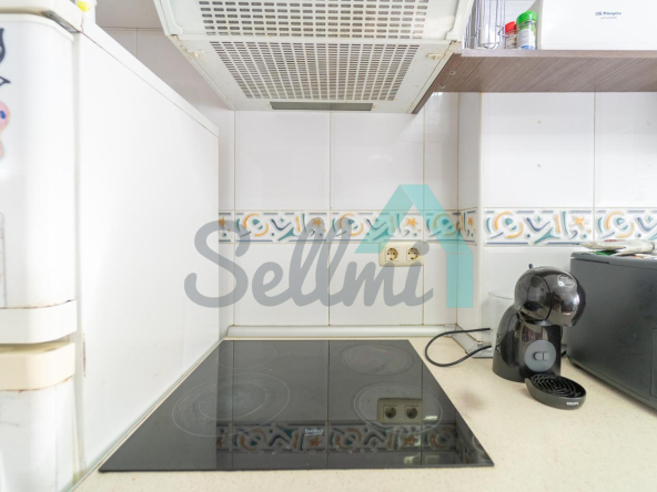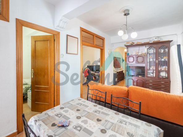 La vivienda tiene una superficie construida de 77 m2 distribuidos en hall de entrada, salón comedor, cocina amueblada y equipada, dos habitaciones y un baño completo. Actualmente el salón está dividido para disponer de otras dos habitaciones (sin ventana). Cuenta con una carbonera en el portal.
