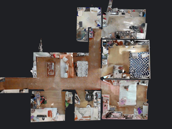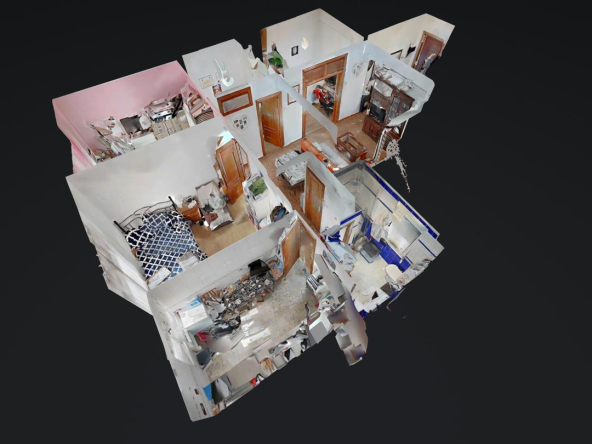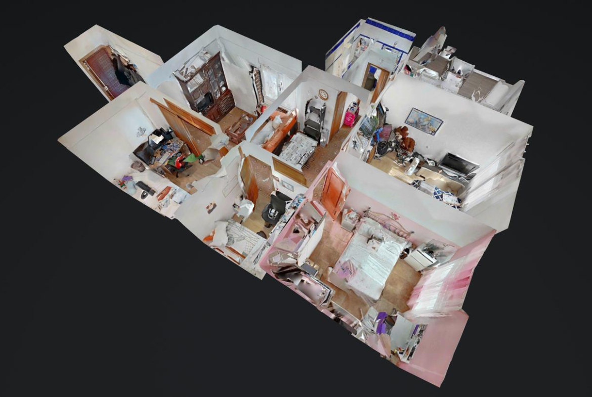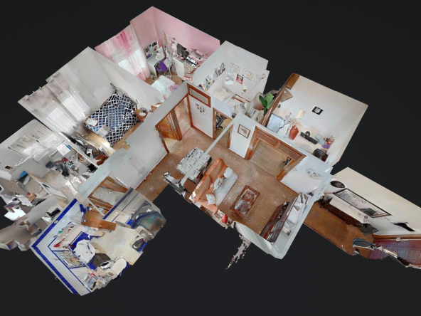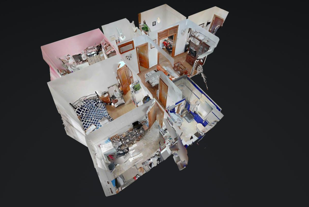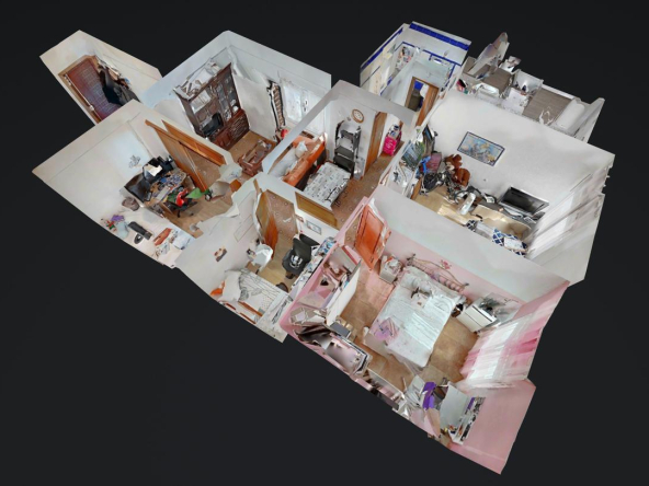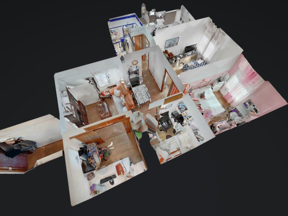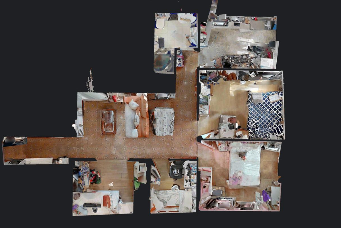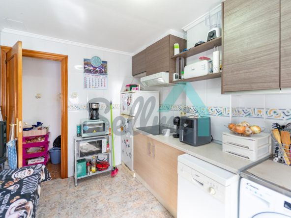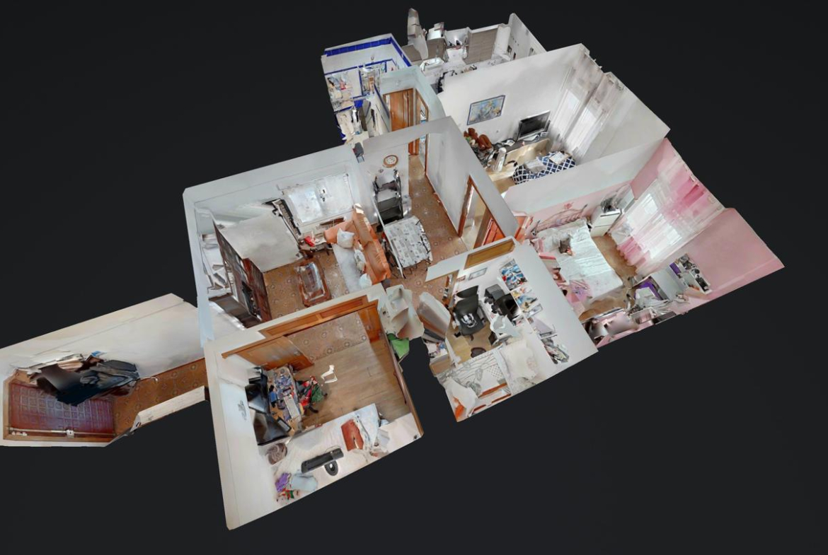 La vivienda tiene una superficie construida de 77 m2 distribuidos en hall de entrada, salón comedor, cocina amueblada y equipada, dos habitaciones y un baño completo. Actualmente el salón está dividido para disponer de otras dos habitaciones (sin ventana). Cuenta con una carbonera en el portal.